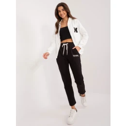 Wymiary kompletu w rozmiarze S/M mierzone na płasko: szerokość bluzy pod pachami - 64 cm, długość rękawa - 60 cm, długość bluzy - 61 cm, szerokość spodni w pasie - 35 cm, wysokość stanu - 30 cm, długość spodni - 94 cm.