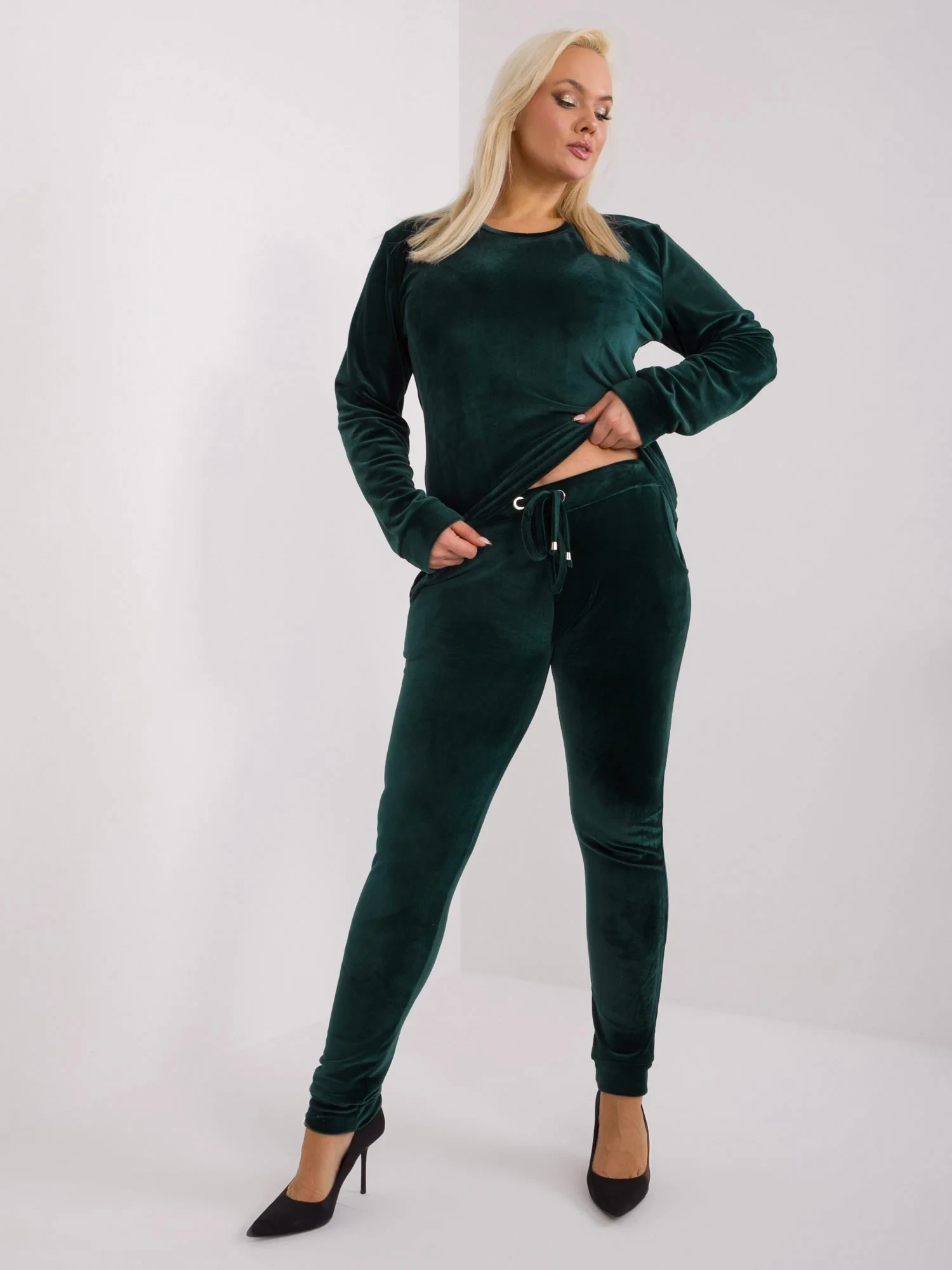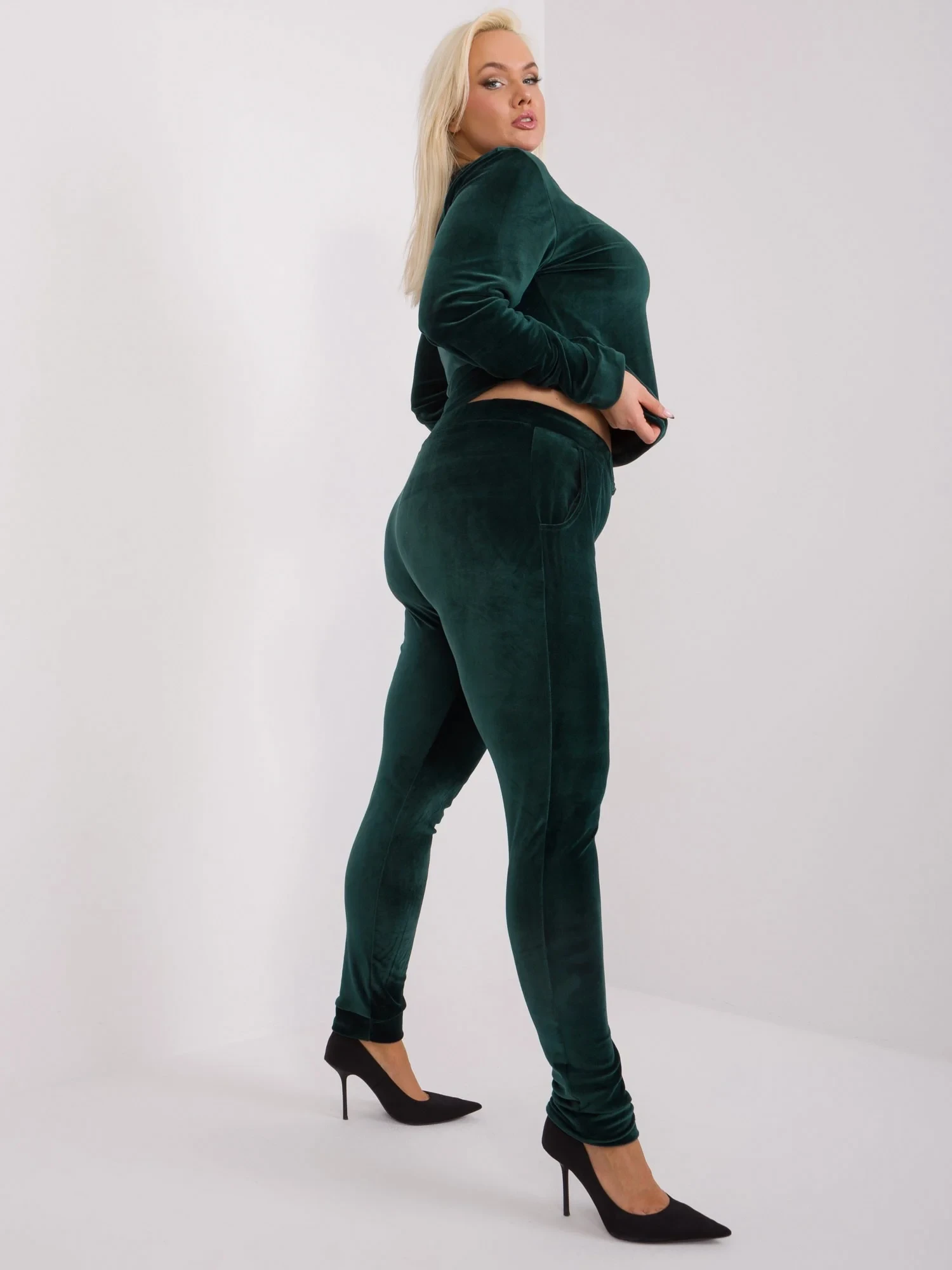 Ciemnozielony komplet welurowy plus size.