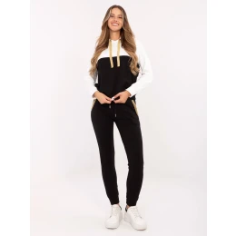 Ecru-czarny damski komplet dresowy z bluzą z kapturem .