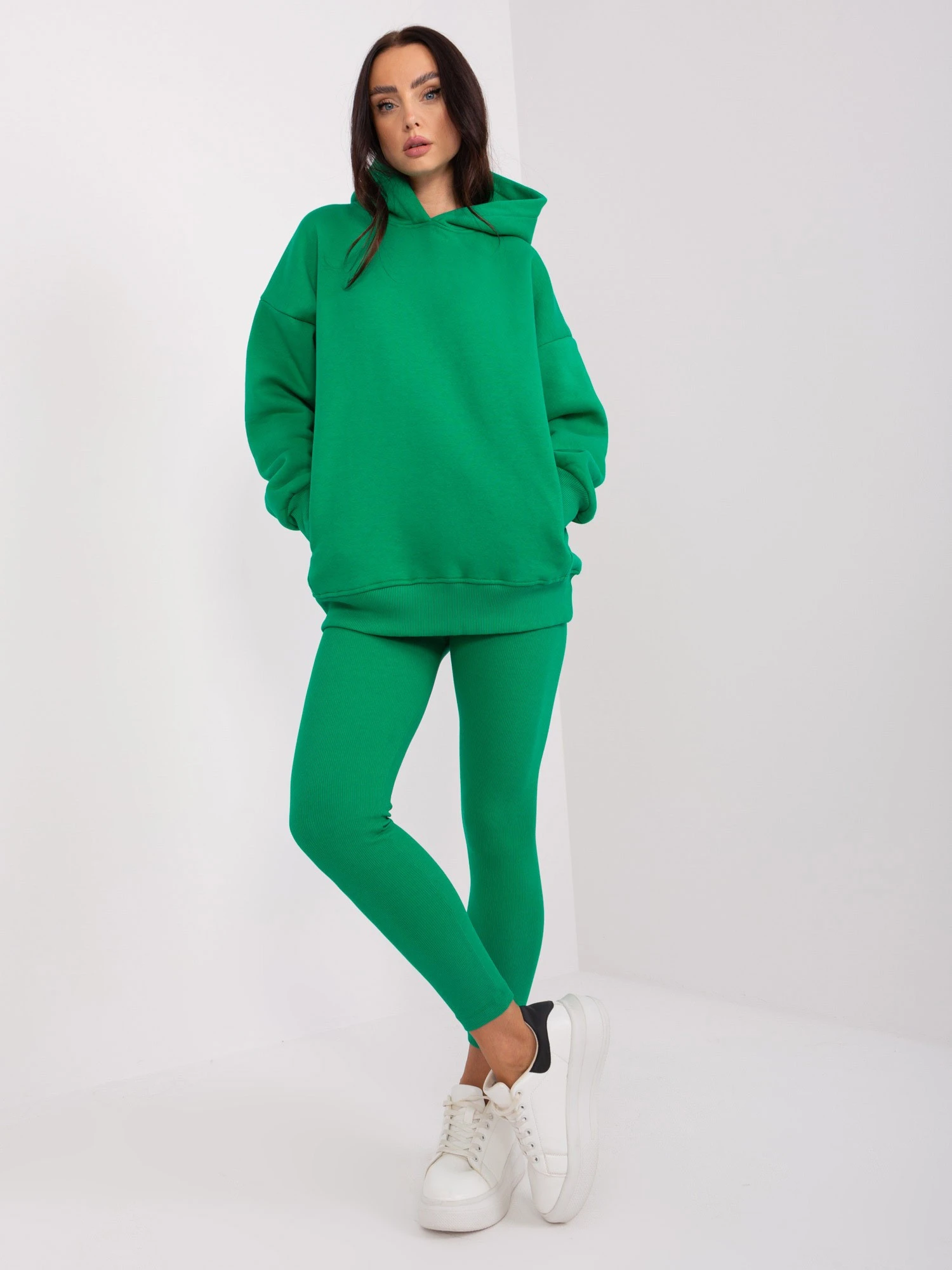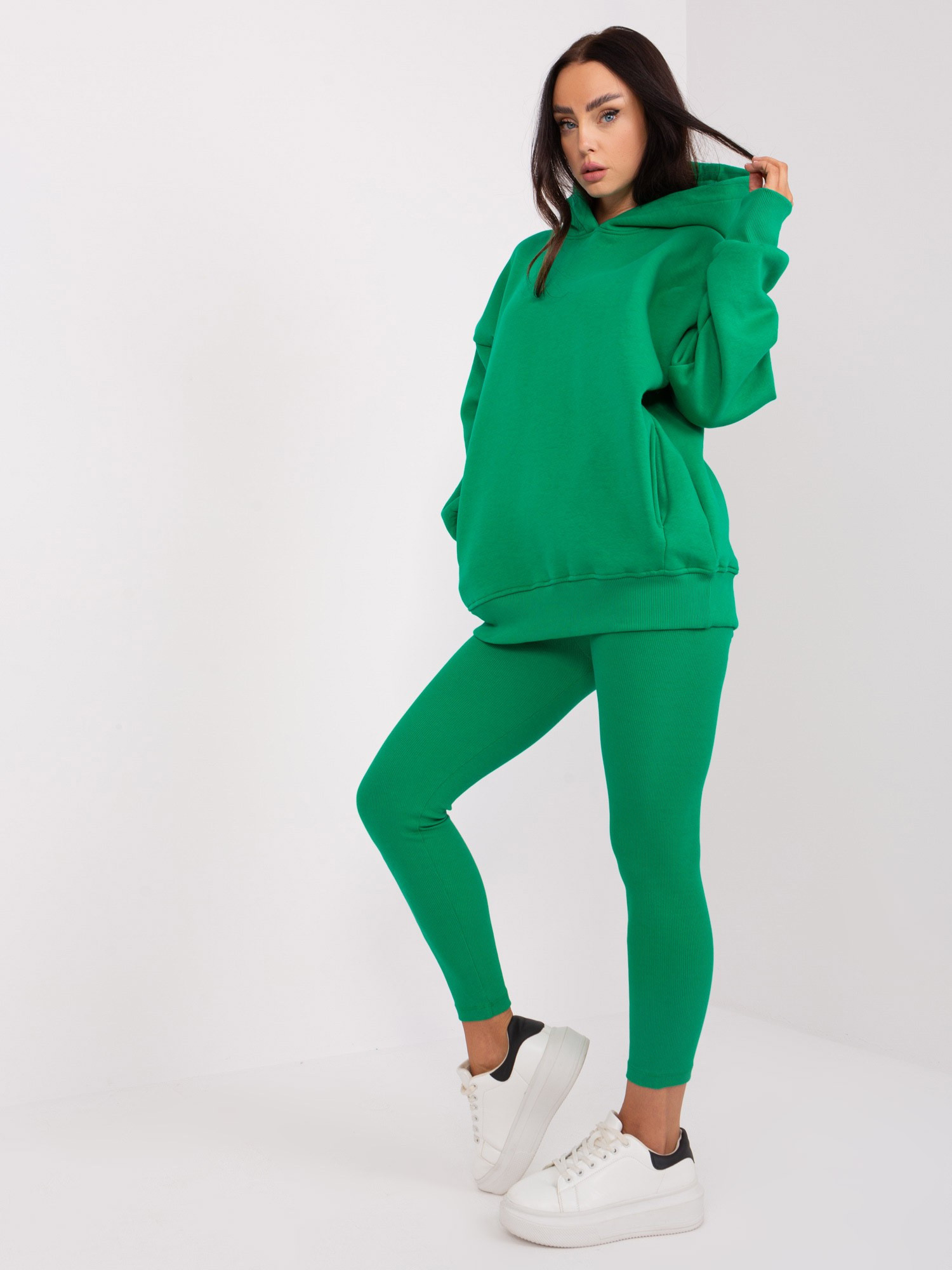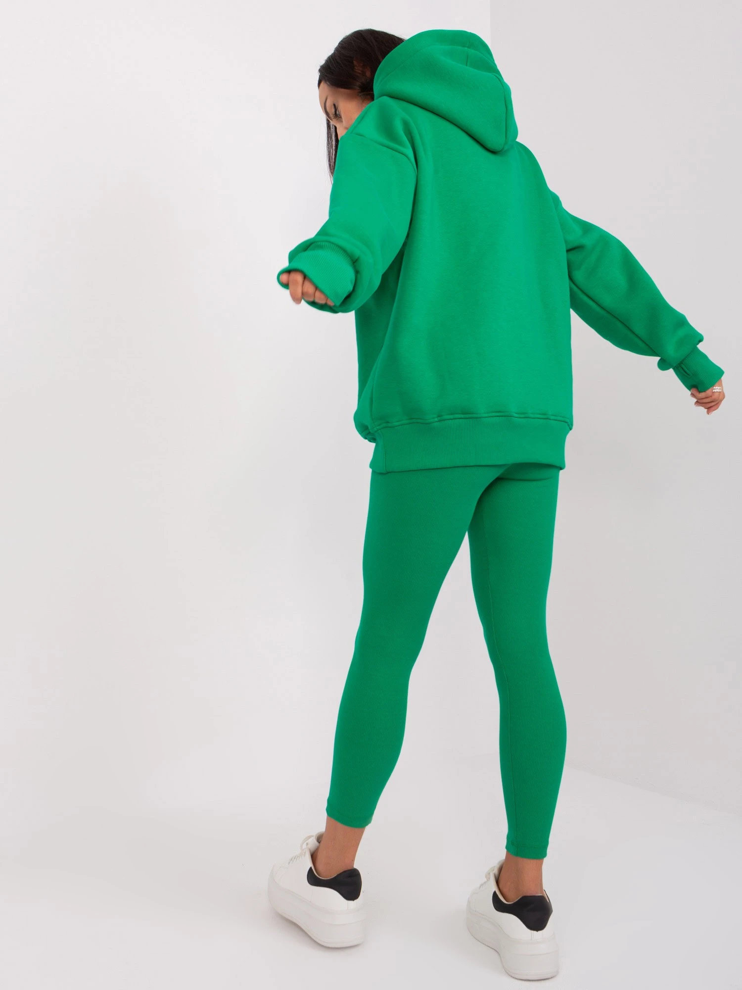 Wymiary kompletu w rozmiarze S/M mierzone na płasko: szerokość bluzy pod pachami - 63 cm, długość rękawa - 62 cm, długość bluzy - 68 cm, szerokość legginsów w pasie - 32 cm, wysokość stanu - 30 cm, długość legginsów - 90 cm.