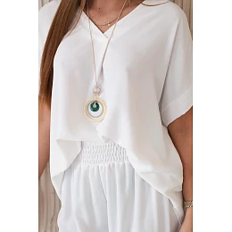 Komplet s náhrdelníkem halenka + kalhoty bílý