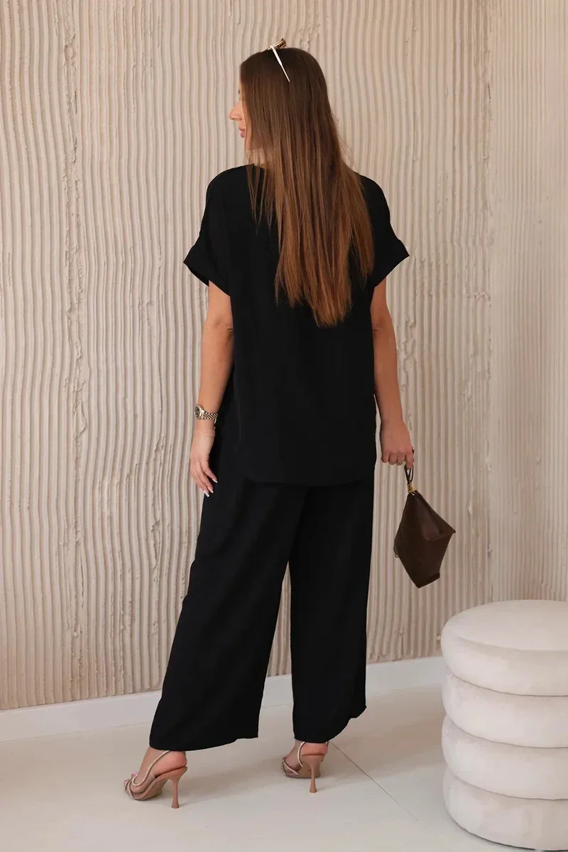 Komplet s náhrdelníkem halenka + kalhoty černý