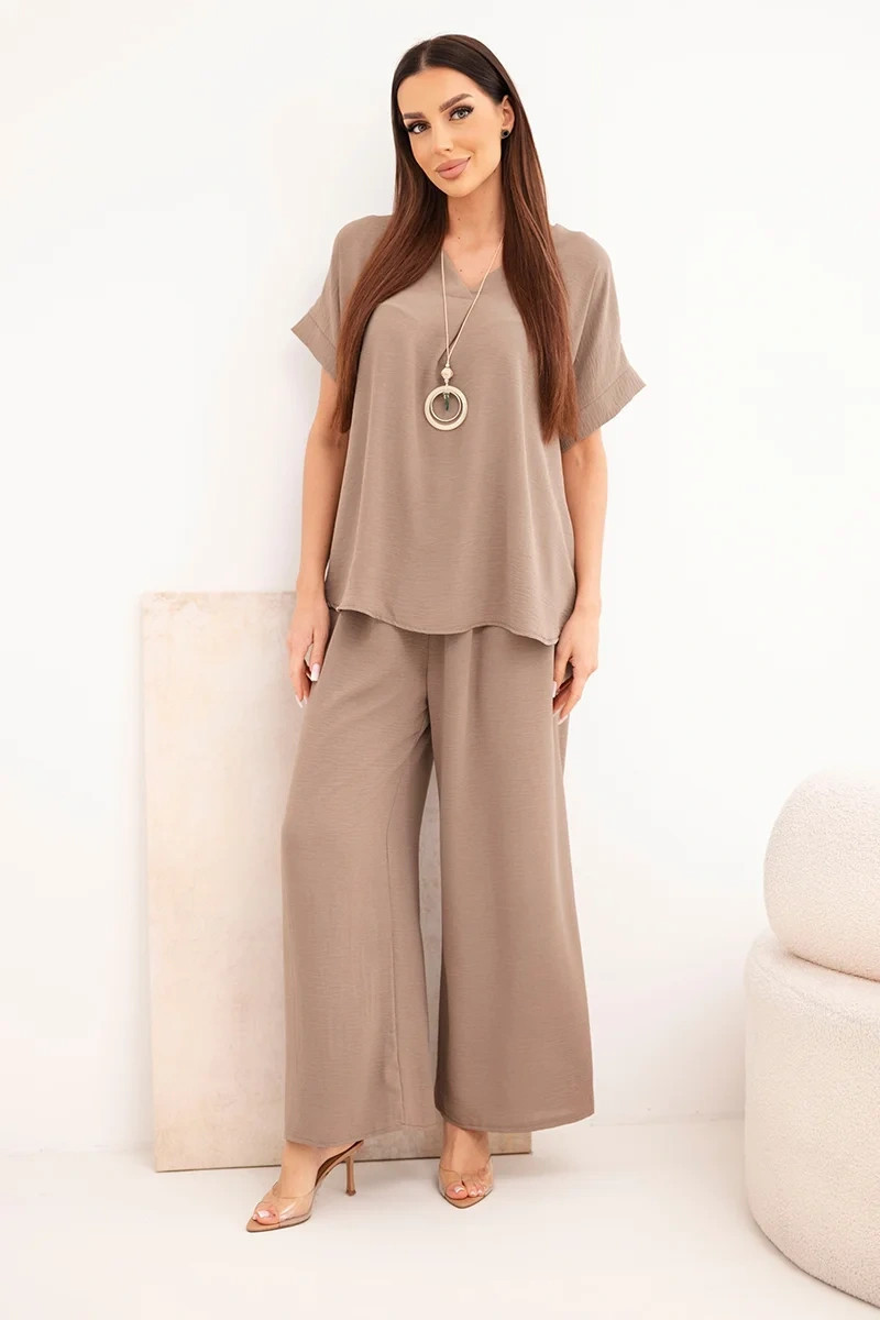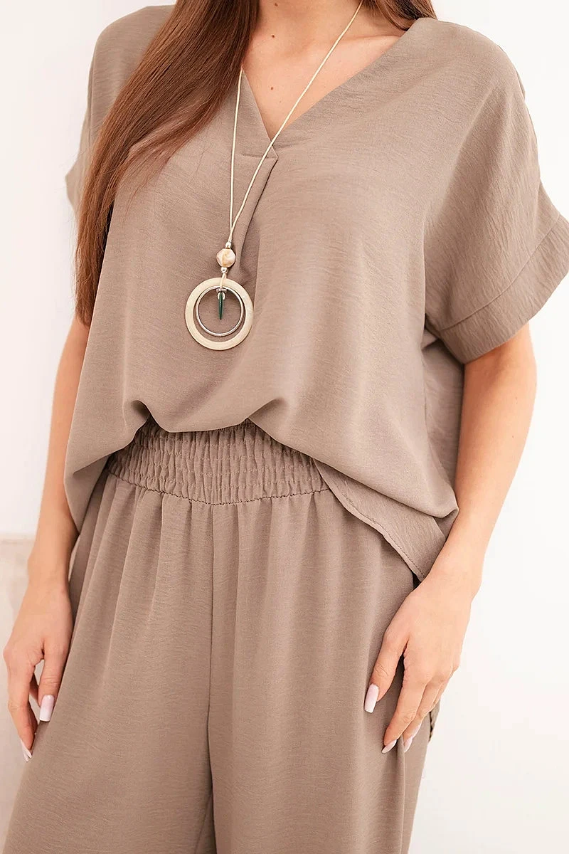 Komplet s náhrdelníkem halenka + kalhoty fango