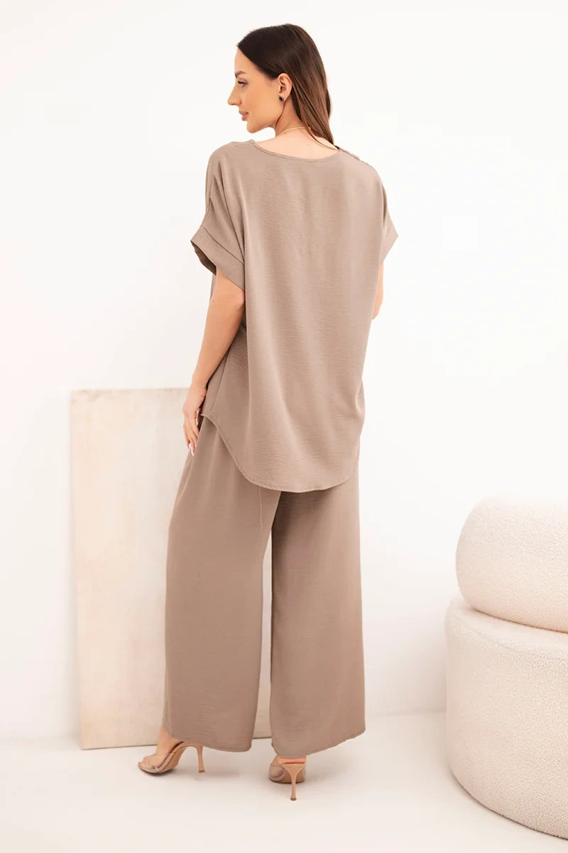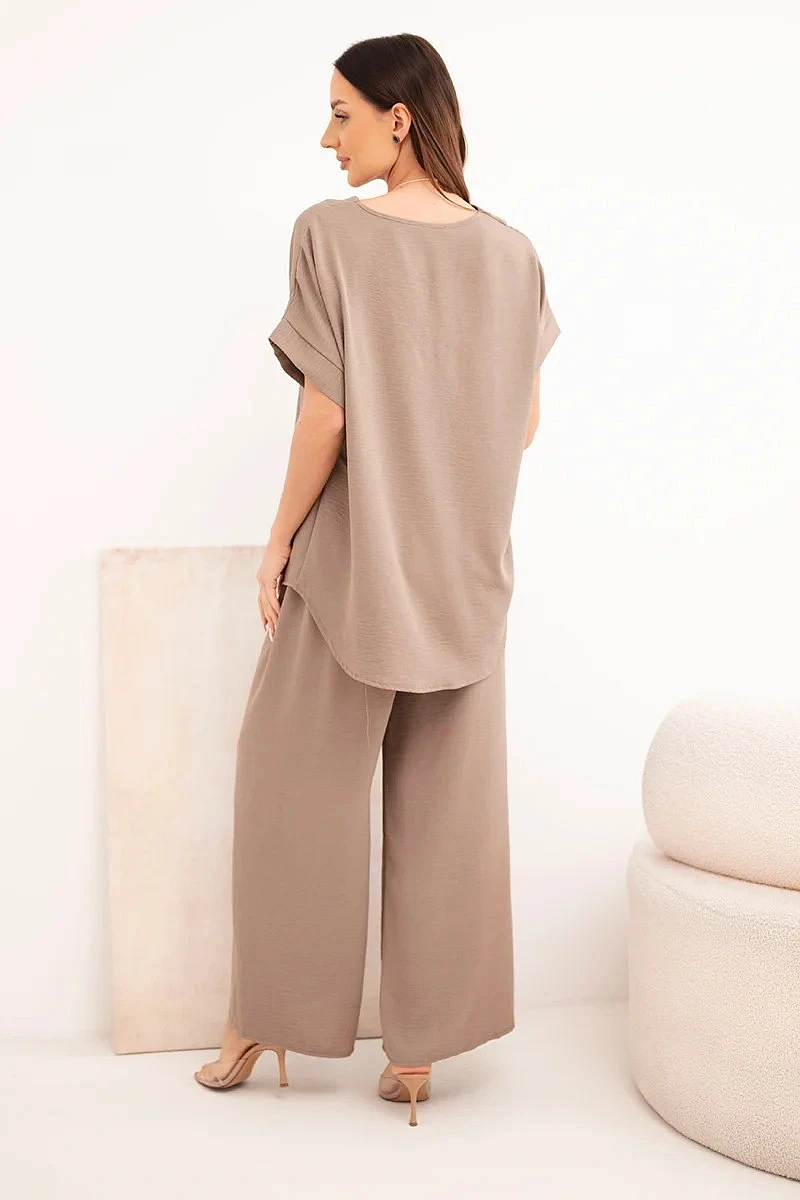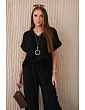 Italská dvoudílná souprava skládající se z halenky a kalhot je elegantní souprava, která dodá kouzlo a styl každému stylingu. Rozevlátá halenka dodává jemnou ženskost, zvýrazňuje postavu a zároveň zajišťuje volnost pohybu. Klasický střih kalhot dokonale ladí s elegantní halenkou a tvoří tak ucelený a stylový celek. Navíc je přívěsek okouzlujícím detailem, který dodává této sadě originalitu a charakter a vytváří harmonickou kompozici. Jde o elegantní doplněk, který zdůrazňuje jedinečnost a smysl pro detail v celém stylingu. Tato italská souprava je ideální pro mnoho příležitostí, od obchodních schůzek až po romantická rande. Toto je rafinovaná volba pro lidi, kteří oceňují eleganci a pohodlí v jednom. Velikost je univerzální a padne ženám, které nosí velikost S, M nebo L.