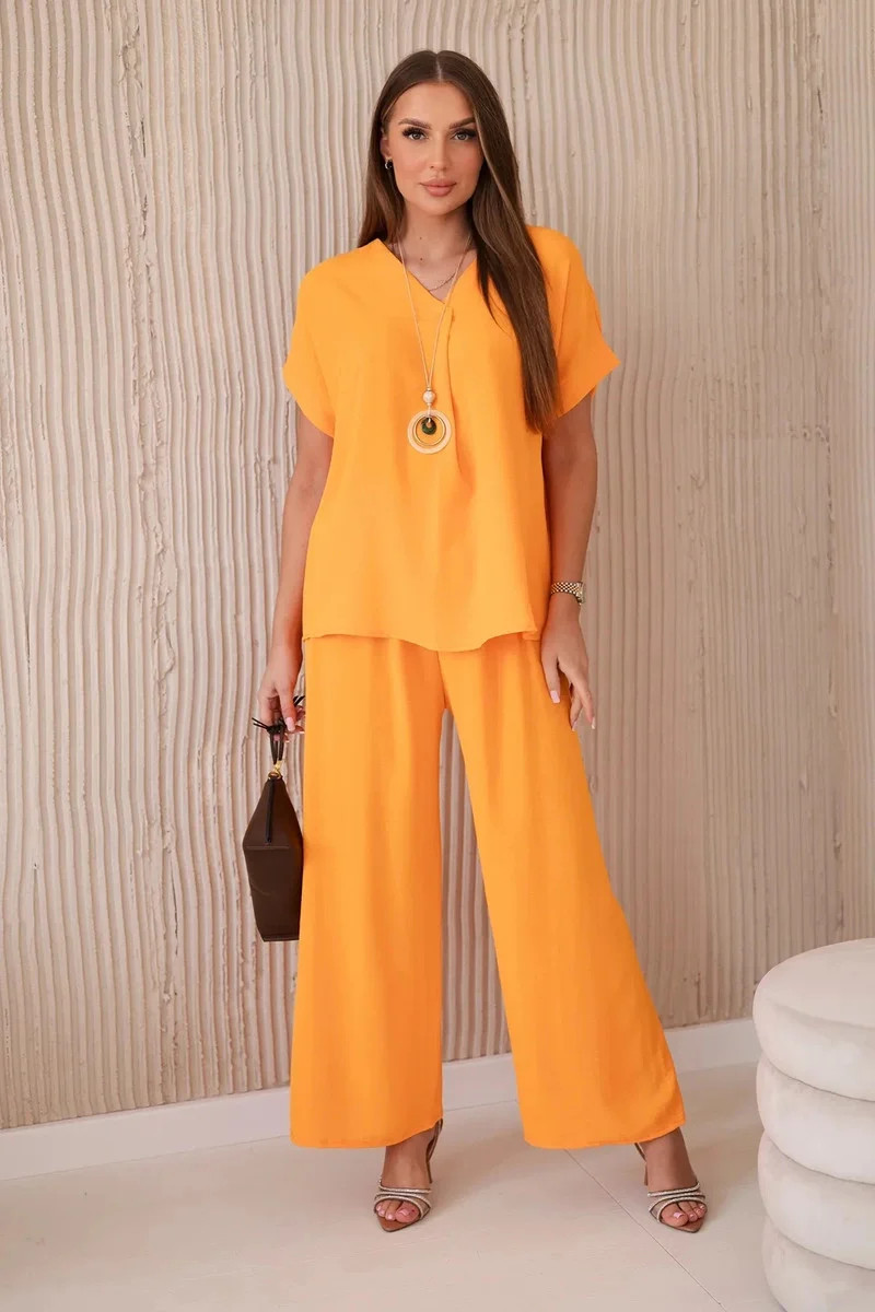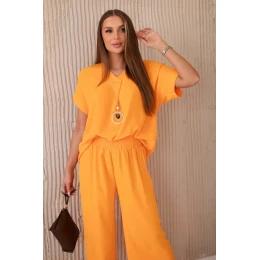 Komplet s náhrdelníkem halenka + kalhoty jasně oranžová