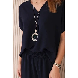Komplet s náhrdelníkem halenka + kalhoty námořnická modř