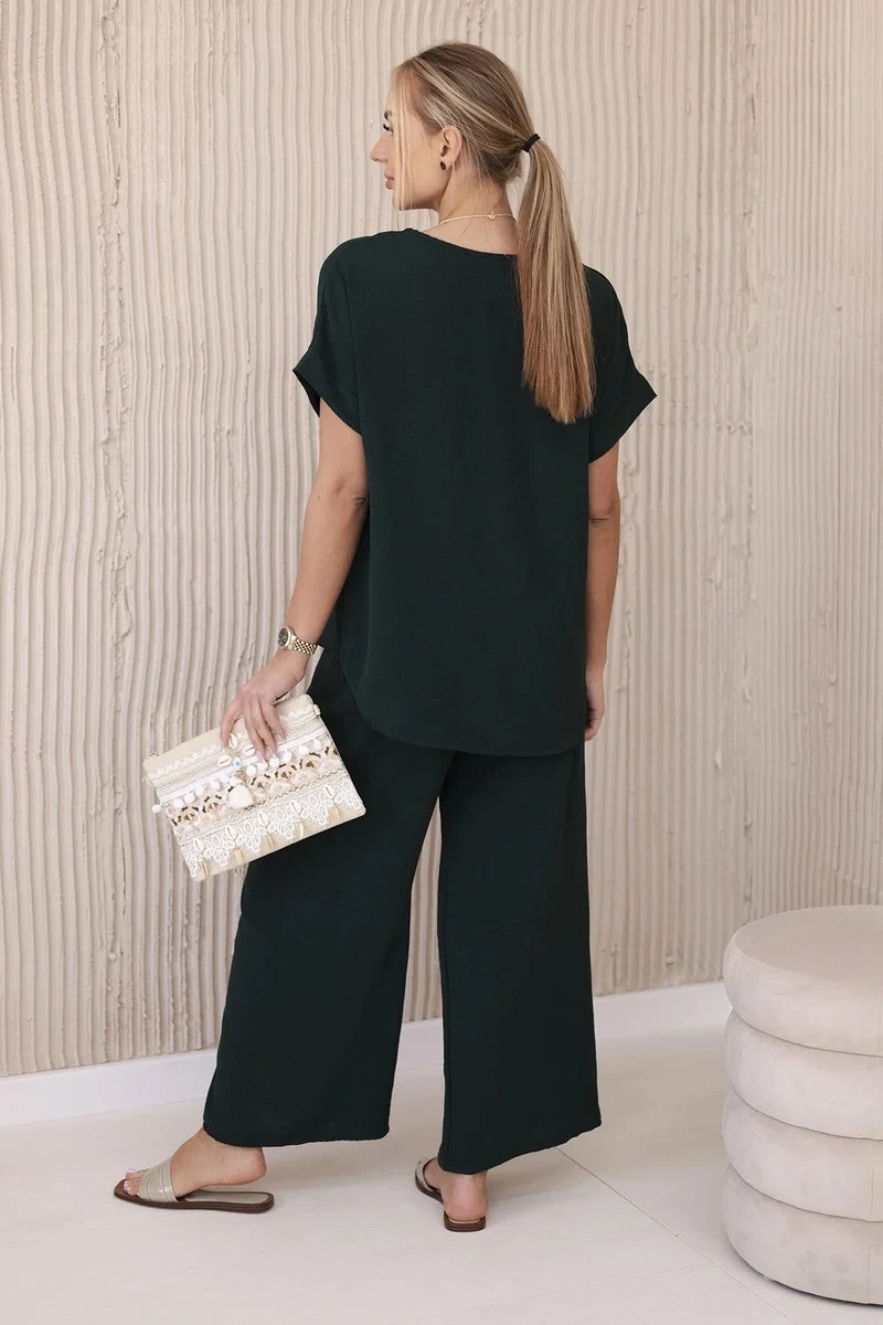 Komplet s náhrdelníkem halenka + kalhoty tmavě zelená