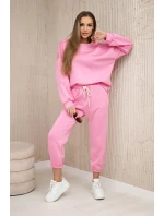 Komplet máslová látka teplákové + kalhoty světle růžová