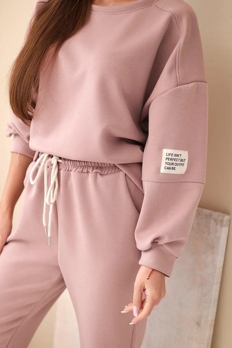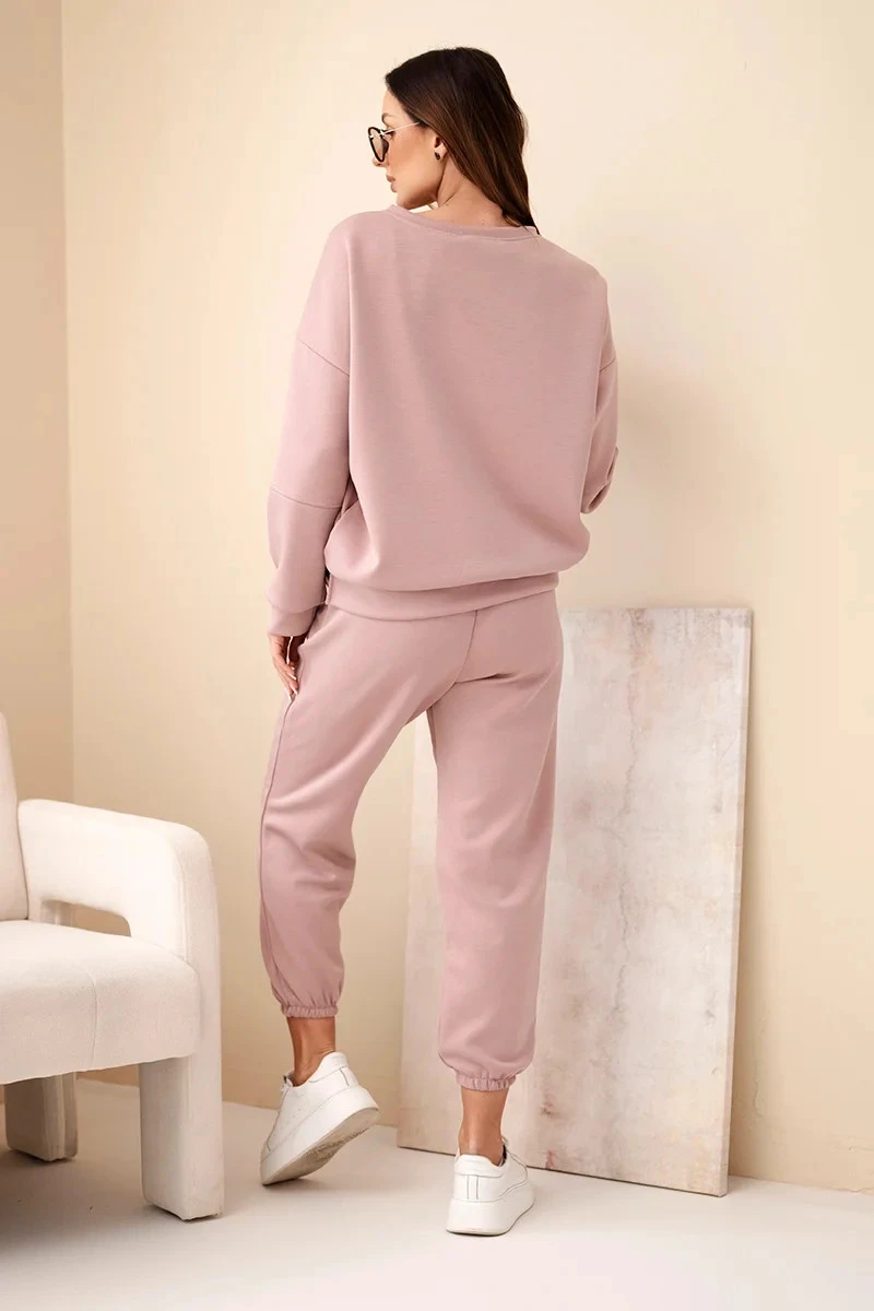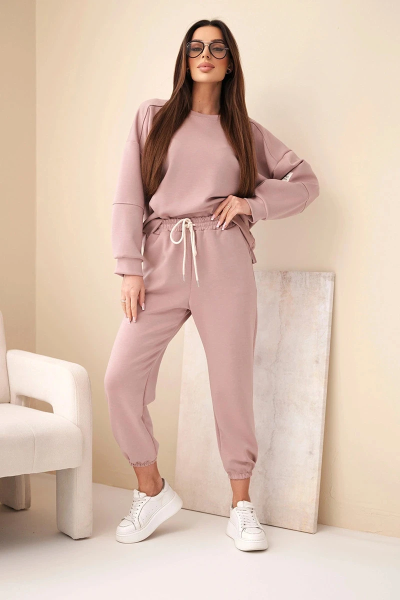 Komplet teplákové + kalhoty máslová látka tmavě růžová