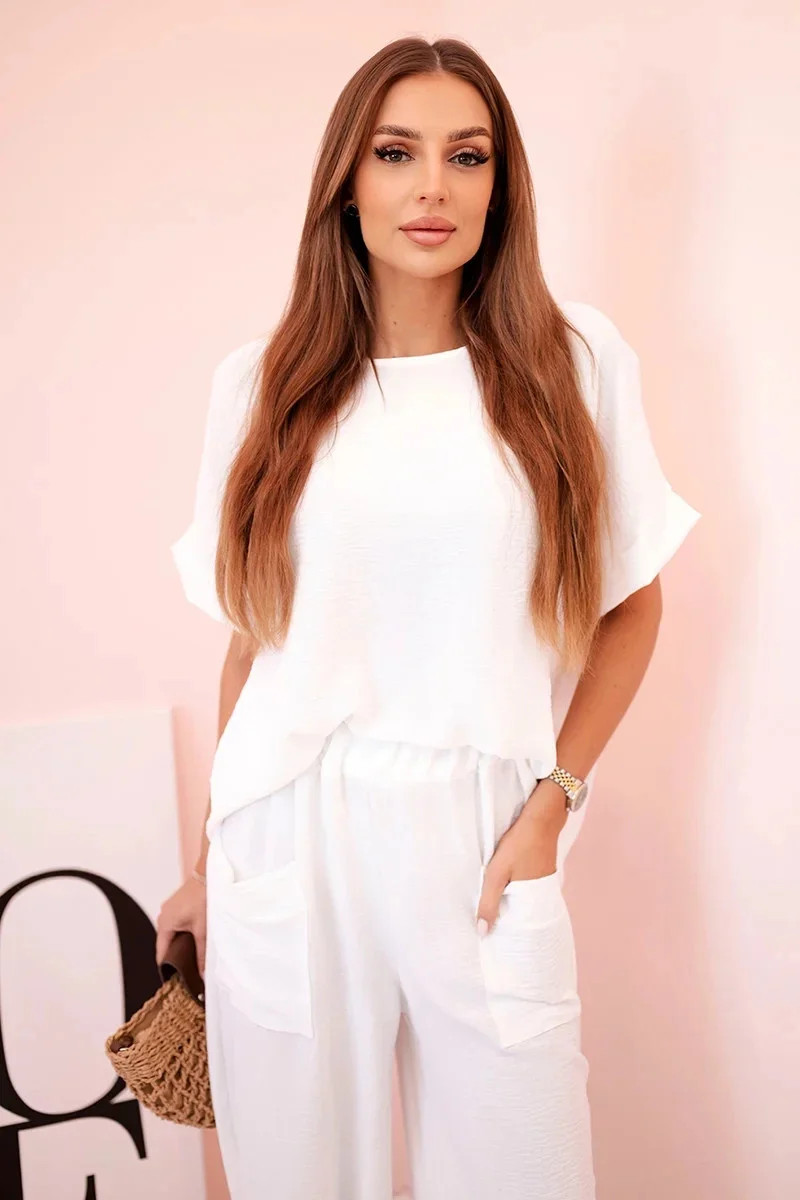 Komplet z viskózy halenka + kalhoty bílý