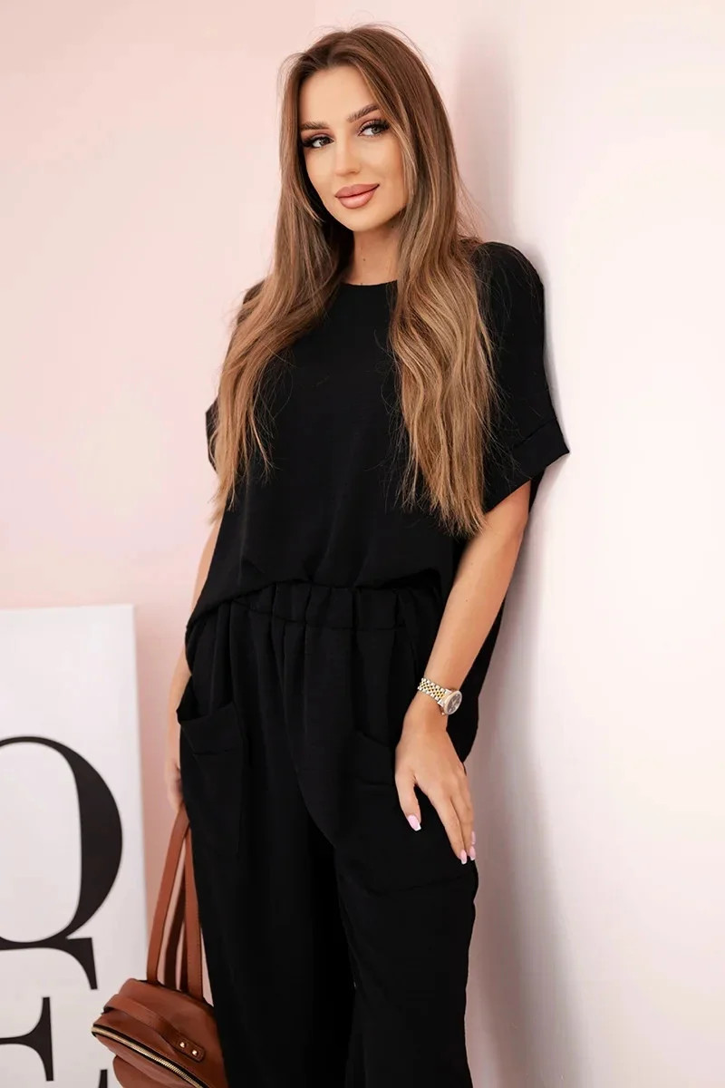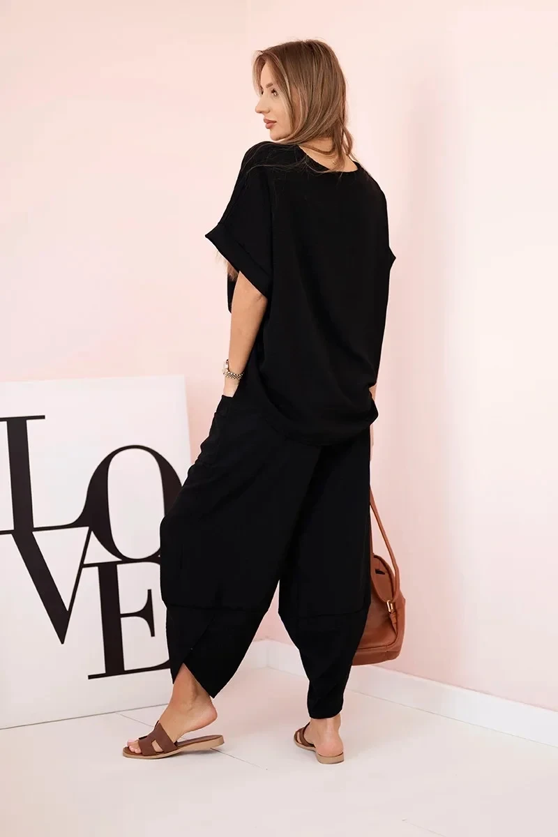 Komplet z viskózy halenka + kalhoty černý