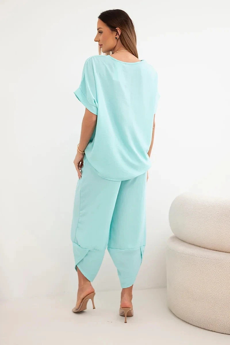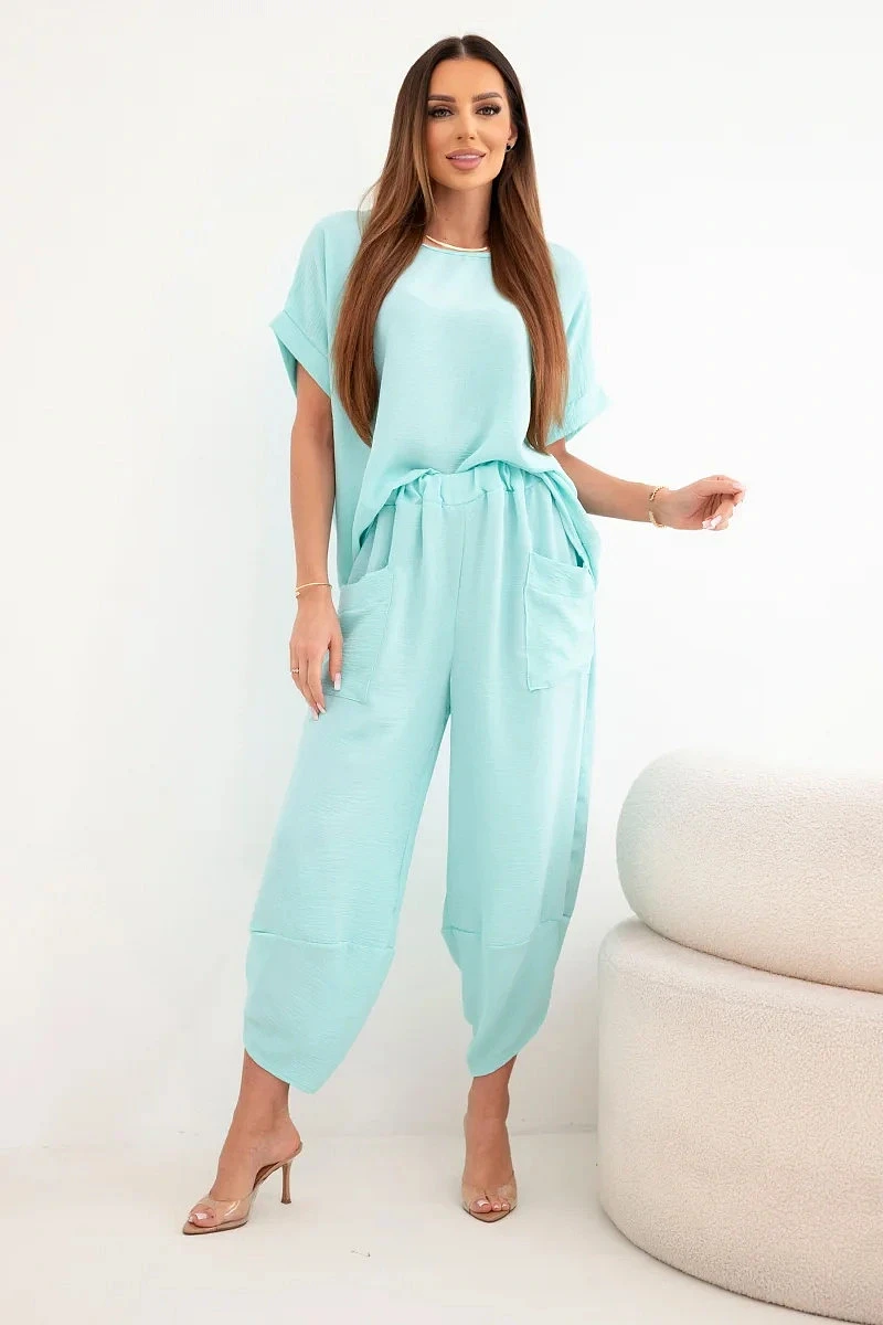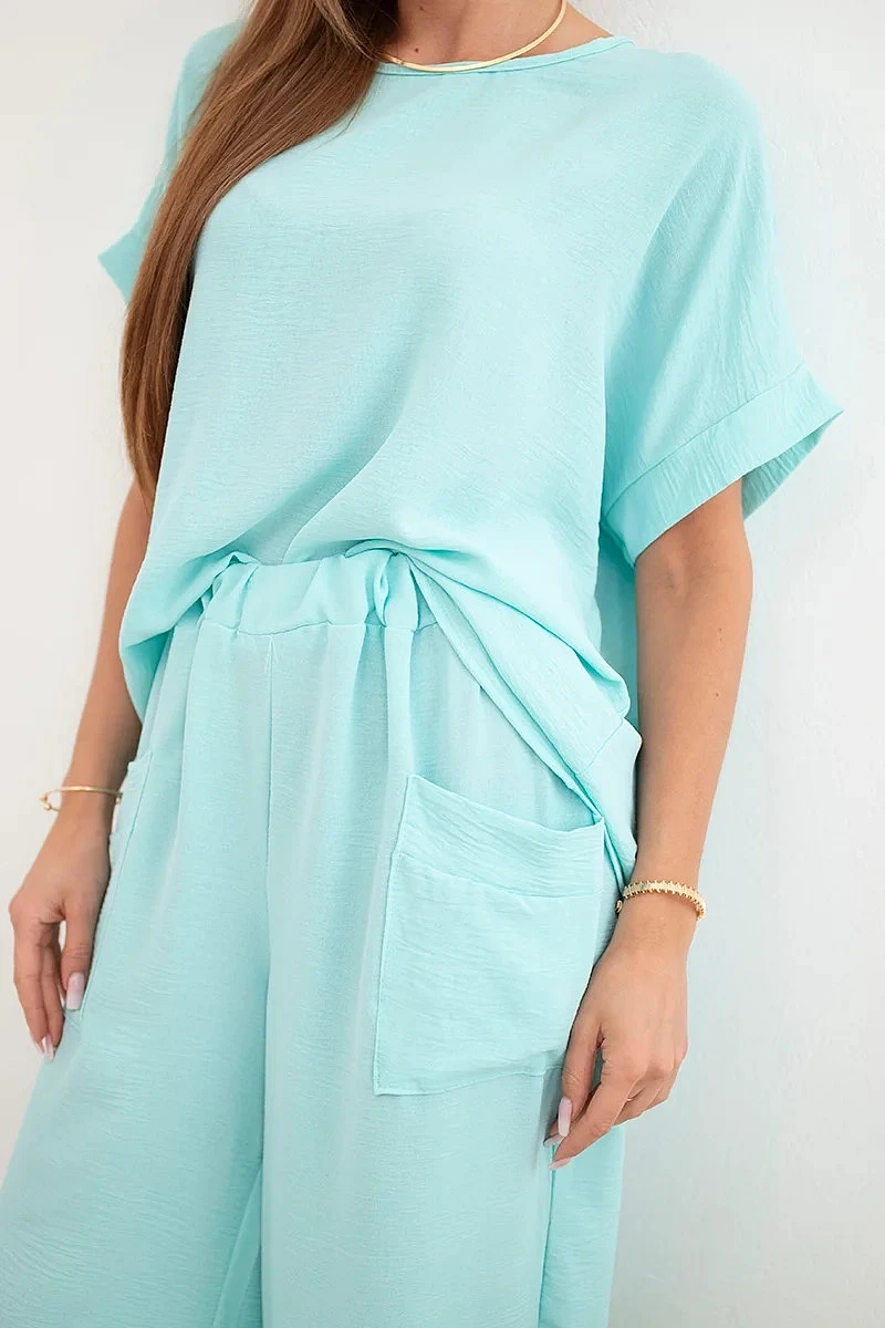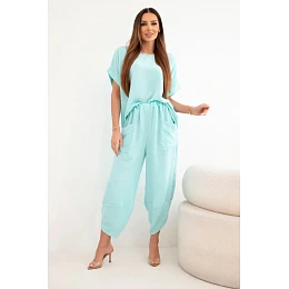 Komplet z viskózy halenka + kalhoty mátový
