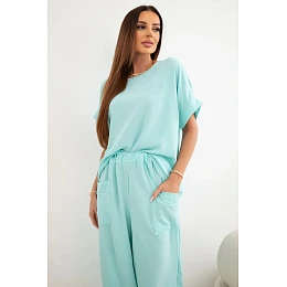 Komplet z viskózy halenka + kalhoty mátový