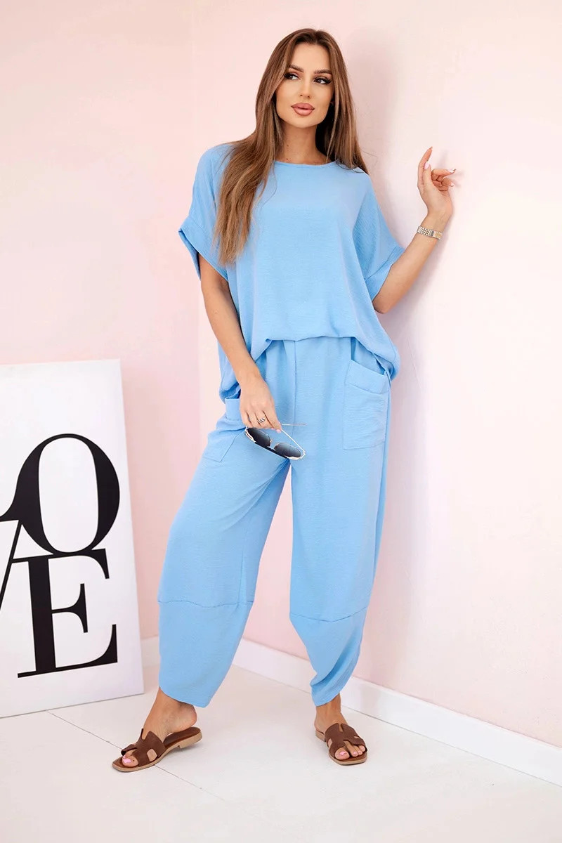 Objevte jedinečný komplet vyrobený z prodyšné a jemné viskózy, který kombinuje styl a pohodlí při nošení. Halenka s klasickým střihem skvěle padne na postavu, zajišťuje volnost pohybu a elegantní vzhled. Díky lehké tkanině je velmi příjemná na pokožce a ideální pro každé roční období. Kalhoty, navržené s důrazem na pohodlí, mají elastický pas a volnější střih, což zajišťuje skvělé přizpůsobení postavě. Jedná se o univerzální soupravu, která se skvěle hodí jak pro každodenní outfity, tak pro elegantnější příležitosti. Zvolte komplet z viskózy, pokud si ceníte lehkosti, přírodních tkanin a moderního vzhledu. Perfektní volba pro ženy, které se chtějí cítit stylově a pohodlně po celý den. Velikost je univerzální a vhodná pro ženy nosící velikost S, M nebo L.