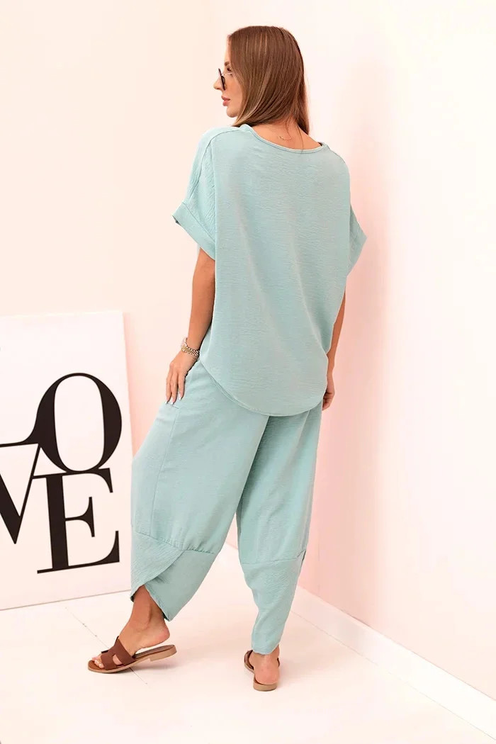 Komplet z viskózy halenka + kalhoty tmavá máta
