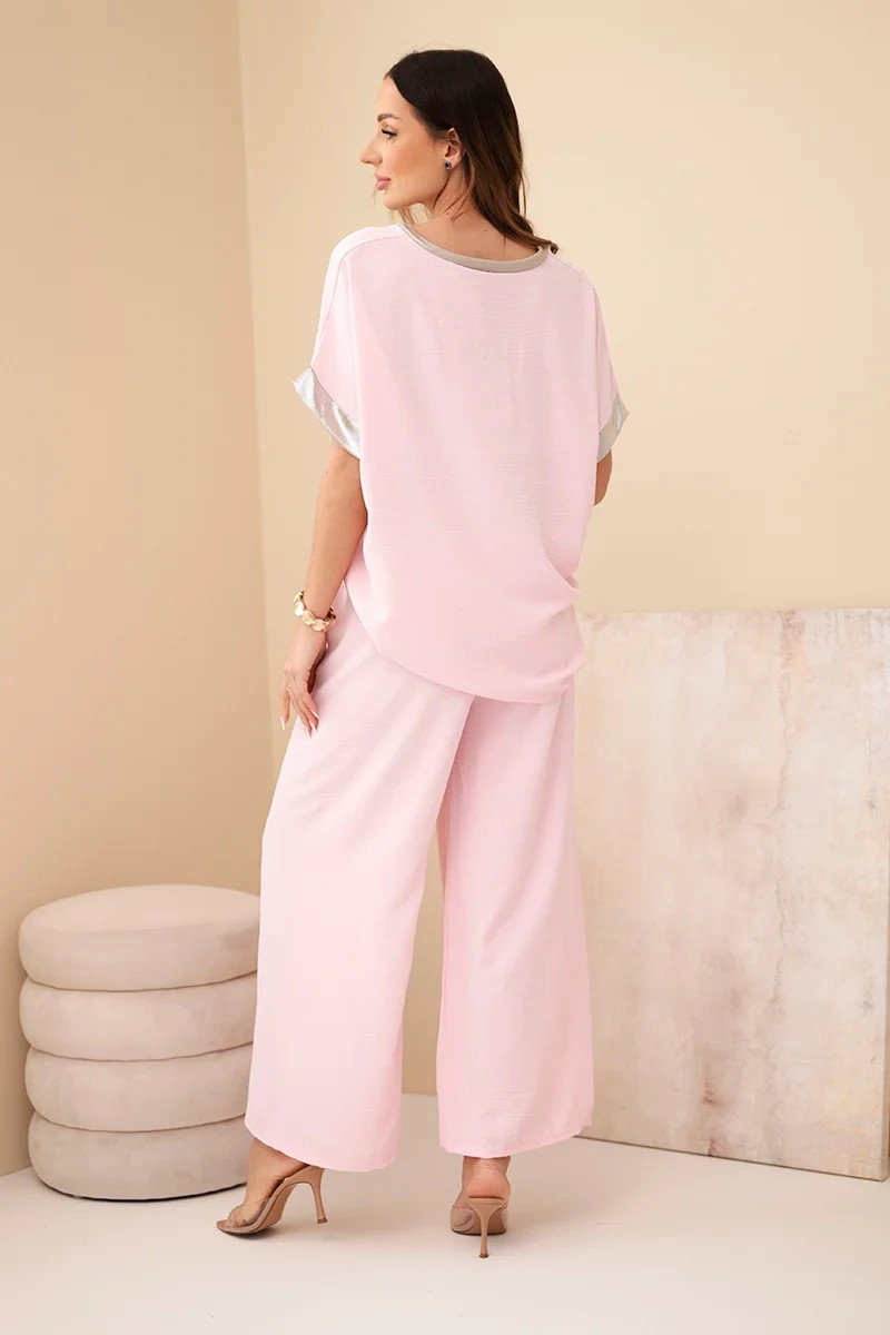 Komplet z viskózy se zlatým lemováním cukrová růžová