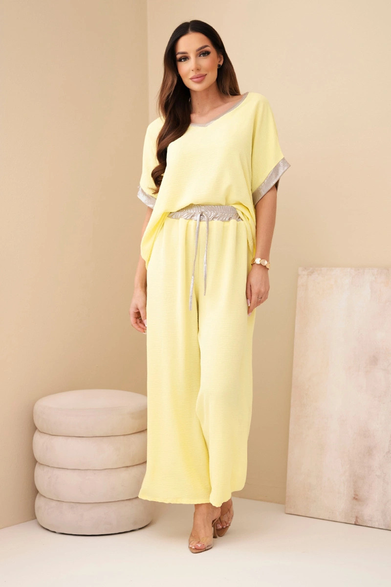 Komplet z viskózy se zlatým model 22010184 žlutý - K-Fashion