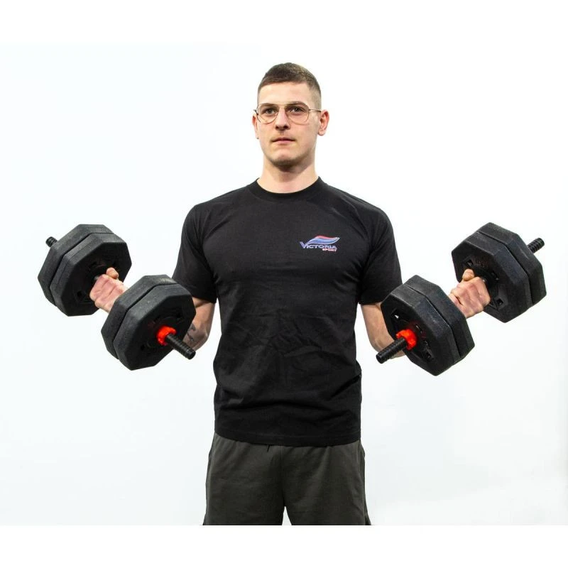 Díky svému univerzálnímu použití po tréninku s činkami rychle spojíte celek do činky. S tímto inovativním řešením budete provádět cviky na celé tělo. Cvičení s činkami a barbellou je jednou z nejuniverzálnějších forem fyzické aktivity. Rozšíříte si tréninkový rozsah tím, že budete provádět nemožné nebo nepohodlné cviky pouze s činkami. Na činky můžete kdykoli přidávat/ubírat zátěž. Zátěž upravujete během tréninku a přizpůsobujete ji svým potřebám.
