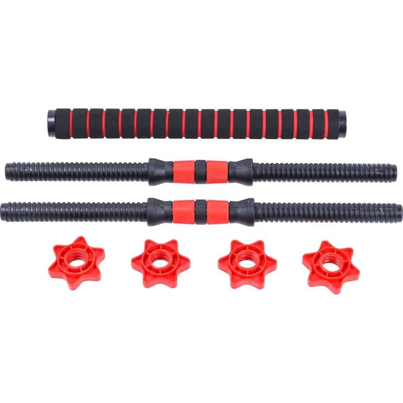 - Složení sady: 8 závaží po 2,5, dvě spojky (56 cm a 40 cm), dva úchyty na činky (50,5 cm), svorky (matice) - 4 ks.