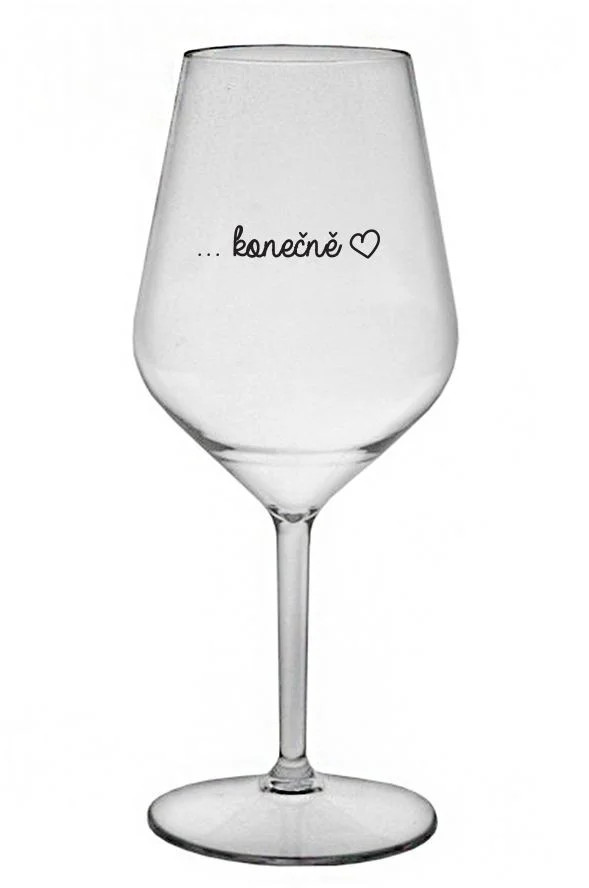 Nerozbitná čirá vinná sklenice s motivem ...KONEČNĚ je skvělá na zahradu, pláž, výlet, piknik a parádu udělá i při kempování. Jelikož je vyrobená z kvalitního polykarbonátu je de facto nerozbitná. Je to luxusní kousek, s nímž si víno můžete vychutnat prostě kdekoliv. Mají ergonomický tvar, který příjemně padne do ruky a protože je lehká, usnadňuje to její přenášení. Je snadno skladovatelná a lehce se čistí. Díky svému designu si s ní můžete vychutnat doopravdy kdekoliv bezproblémové pití výborného vína.