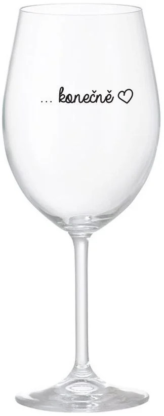 Vinná čirá sklenice s originálním motivem ...KONEČNĚ je krásným a osobitým dárkem, které ale využijete i Vy sami třeba ve chvílích, kdy si budete chtít zpříjemnit náročný den. Tyto originální vinné sklenice jsou totiž nejen pro výjimečné události, ale i pro běžné večery, které si chcete zpříjemnit sklenkou dobrého vína. Jistě proto potěší každého milovníka vína, i toho, kdo si umí svůj život vychutnat plnými doušky.
