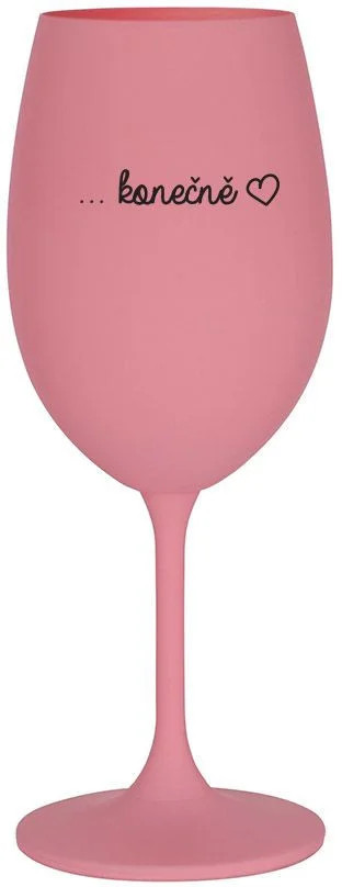 Vinná růžová sklenice s originálním motivem ...KONEČNĚ je krásným a osobitým dárkem, které ale využijete i Vy sami třeba ve chvílích, kdy si budete chtít zpříjemnit náročný den. Tyto originální vinné sklenice jsou totiž nejen pro výjimečné události, ale i pro běžné večery, které si chcete zpříjemnit sklenkou dobrého vína. Jistě proto potěší každého milovníka vína, i toho, kdo si umí svůj život vychutnat plnými doušky.