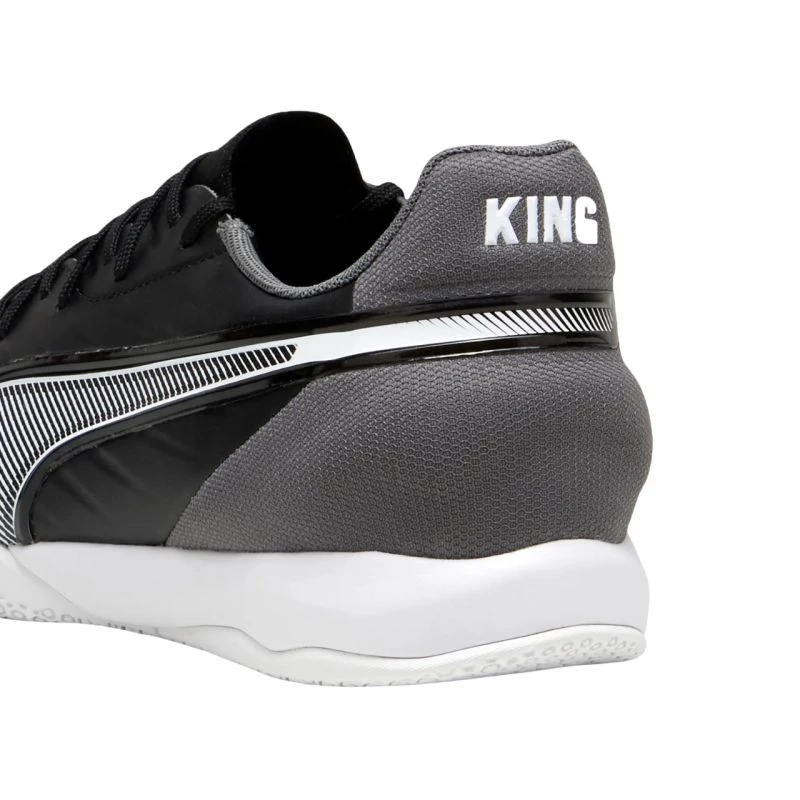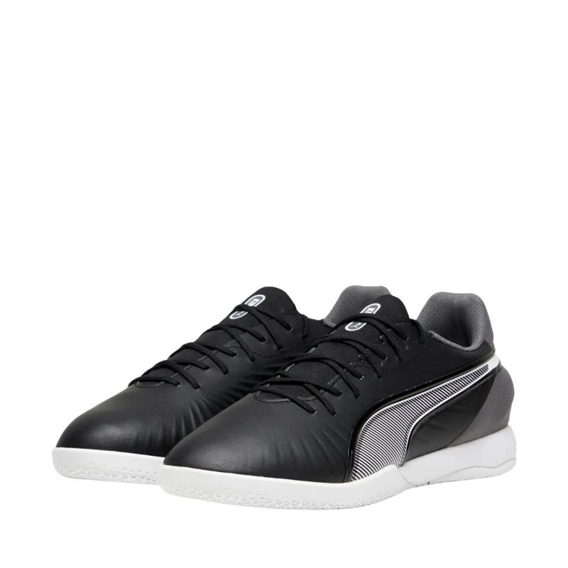 Buty piłkarskie Puma King Match IT 107880 01 Halówki męskie Puma King zapewniają lepszą przyczepność i szybkość reakcji podczas treningów odbywających się na sztucznych nawierzchniach trawiastych. Sznurowana konstrukcja. Cholewka z przyjaznej środowisku skóry syntetycznej. Gumowa podeszwa zewnętrzna.