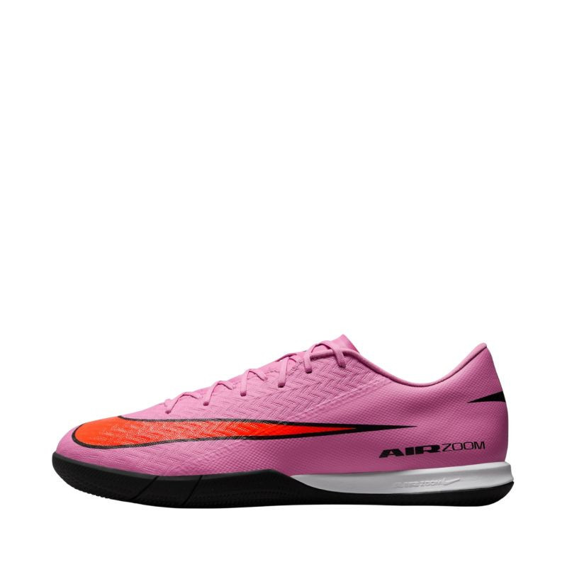 Nike Zoom Mercurial Vapor 16 Academy IC FQ8434 600 Pánské kopačky Nike, určené na asfalt a do haly, z kolekce Scary Good. Svršek NikeSkin s chevronovým vzorem, šněrovací konstrukce, perforovaný jazyk, měkké polstrování a pěnová podrážka, plynové odpružení Air Zoom, polstrovaná stélka a gumová podrážka.
