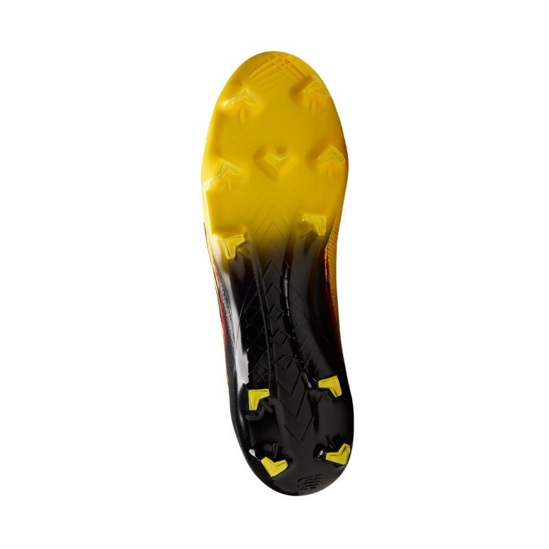 Buty piłkarskie New Balance Furon Pro FG V8 żółte NBUF2F10X Męskie korki piłkarskie New Balance z linii Furon sprawdzą się podczas półprofesjonalnych rozgrywek na naturalnej murawie. Cholewka z materiałów syntetycznych jest lekka, przewiewna i dobrze dopasowuje się do kształtu stopy. Asymetryczne sznurowanie. Miękko wyściełany zapiętek. Niski kołnierz. Wewnętrzna, wyprofilowana wkładka 3D wspiera łuk stopy i wspomaga amortyzację wstrząsów. Nylonowa podeszwa zewnętrzna z wypustkami we wzór jodełki zapewnia doskonałą przyczepność przy dużych prędkościach.