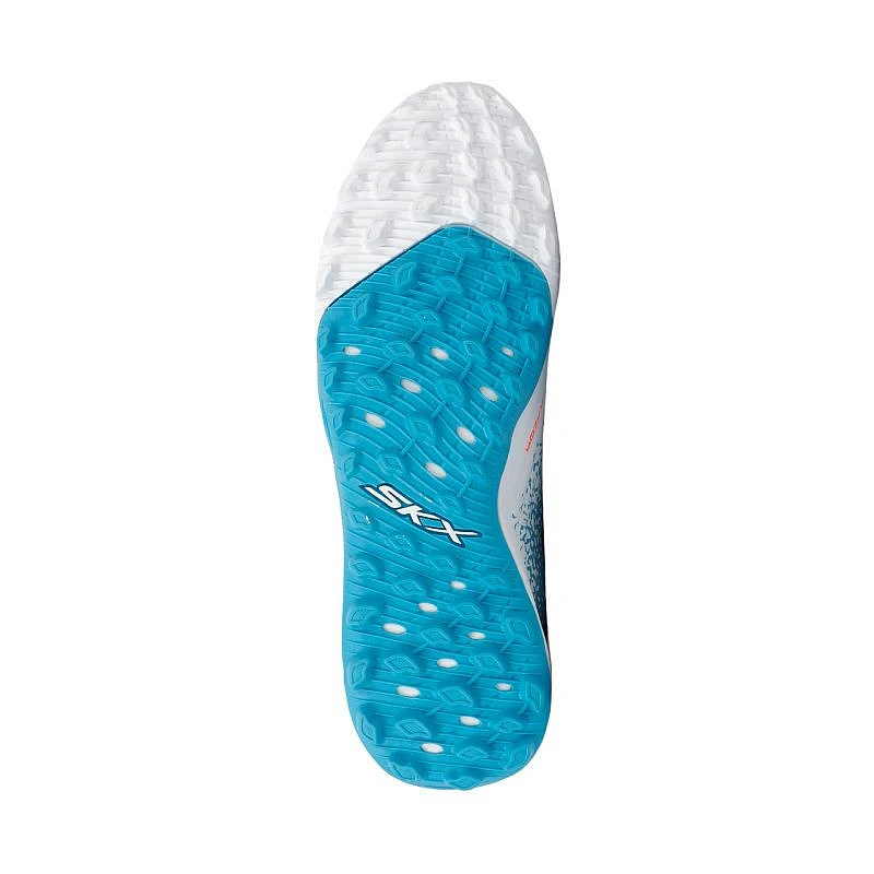 Fotbalová tréninková obuv Skechers Razor 1.5 Academy TF Blue/White 252016 WTQP Fotbalová obuv Skechers Razor 1.5 Academy TF na umělý trávník je navržena pro rychlost a hbitost. Odpružení Skechers Move Foam™ zvyšuje pohodlí a měkkost při běhu, zatímco gumová podrážka s vícesměrným vzorkem poskytuje velmi dobrou přilnavost při rozjezdech, zastaveních a změnách směru. Syntetický, lehký svršek se dobře přizpůsobí noze a podporuje kontrolu míče a dynamickou hru.