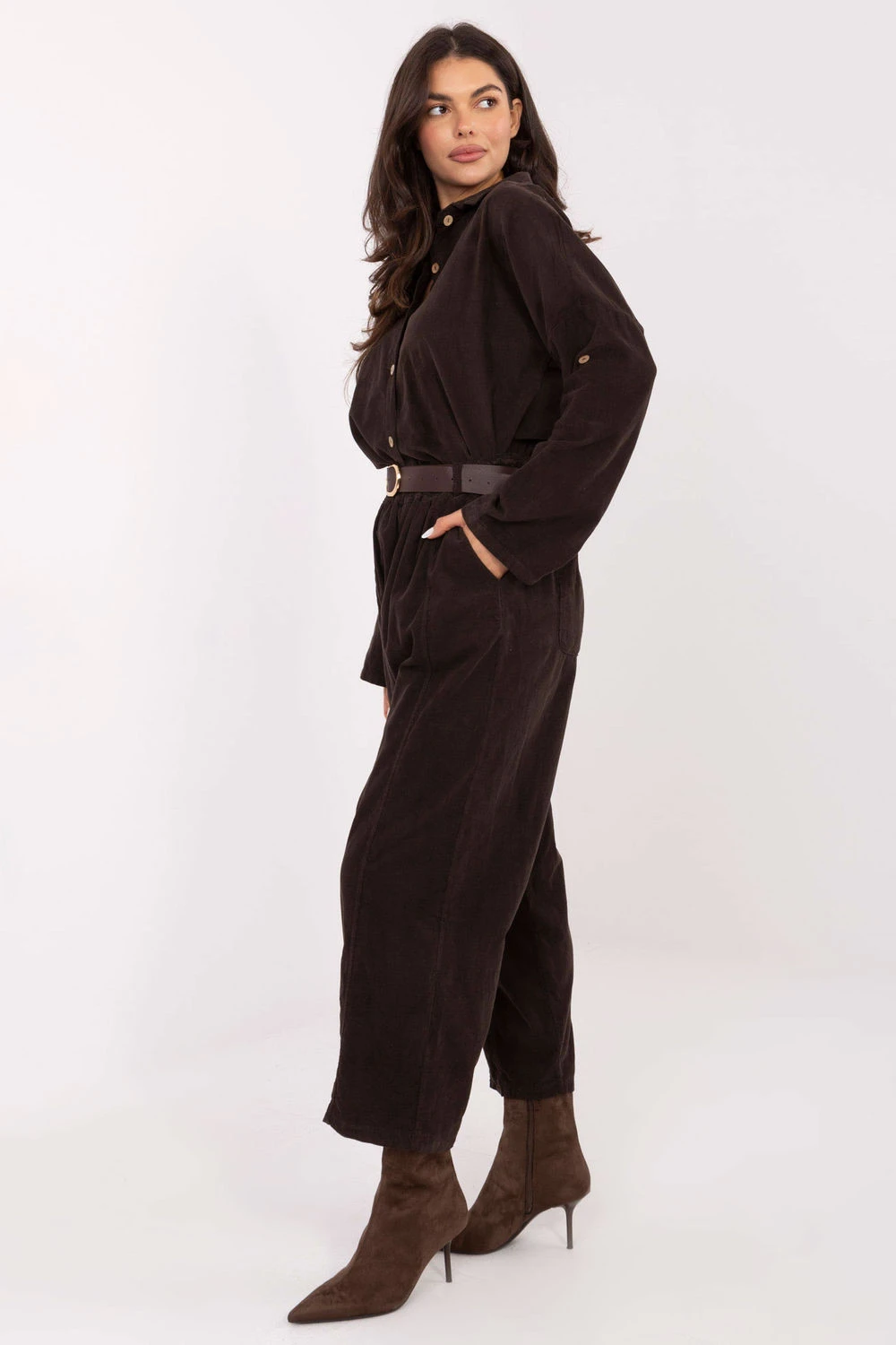 Pohodlné a stylové dámské kalhoty s volným střihem, ideální na každý den. Vyrobené z měkkého polyesteru, poskytují pohodlí při nošení a volnost pohybu. Model má vysoký pas s všitou gumou, díky čemuž skvěle padne a zdůrazňuje pas. Kalhoty mají boční kapsy a otevřené kapsy vzadu, což jim dodává praktičnost. Celý vzhled doplňuje pásek zapínající se v pasu, který představuje módní a funkční detail. Hladký materiál a široké nohavice jim dodávají lehkost a nonšalanci, skvěle se hodí k casual a každodenním outfitům, ať už s elegantní košilí nebo volným tričkem.