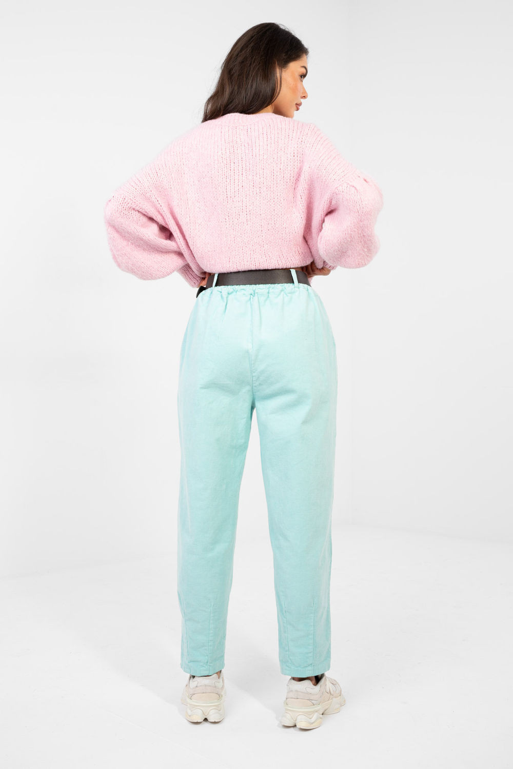 Stylové kordové kalhoty ve střihu mrkve jsou skvělým návrhem na každý den i do práce. Jejich volný charakter v kombinaci s elegantními detaily dělá z modelu skvělý doplněk do městských outfitů. Hladký vzor zdůrazňuje nadčasový charakter kalhot a usnadňuje jejich kombinaci s různými kousky šatníku. Model s vysokým pasem krásně zdůrazňuje pas a gumový pásek v pasu zajišťuje pohodlné přizpůsobení se postavě. Další výhodou je zapínací pásek, který celku dodává stylové zakončení. Zúžené nohavice a ozdobné záložky vpředu dodávají kalhotám moderní, lehce elegantní charakter a opticky zúžují postavu. Kalhoty jsou vyrobeny z příjemné směsi bavlny s přídavkem elastanu, což zaručuje pohodlí nošení a volnost pohybu. Boční kapsy zvyšují funkčnost modelu. Jedná se o pohodlný a stylový návrh pro mnoho každodenních příležitostí.