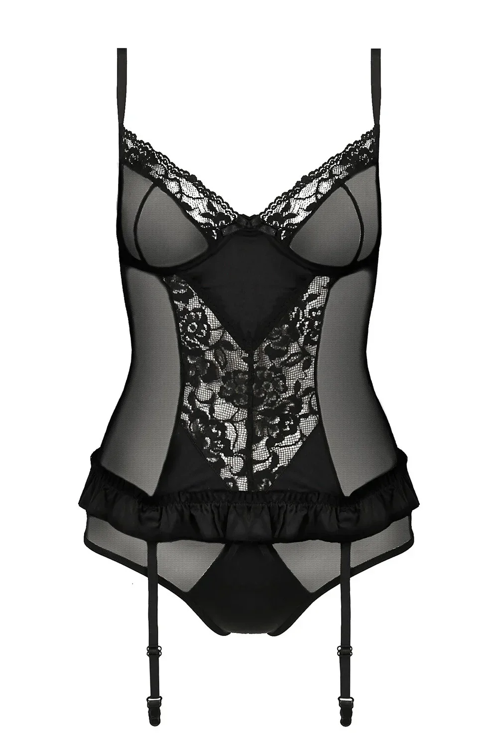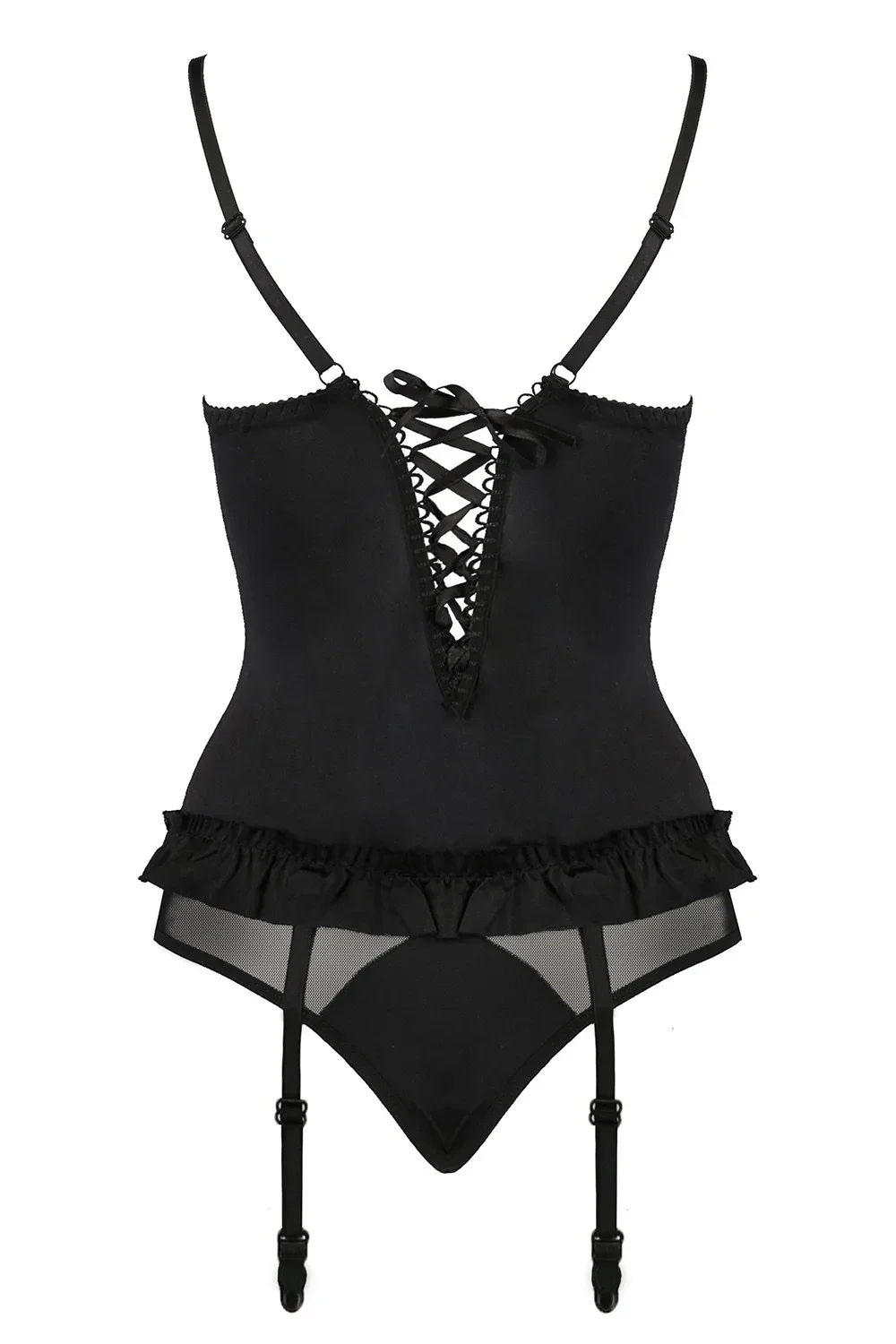 Korzet značky Avanua, model Melek corset. Výrobek je vyroben ze 75 % z polyesteru, 15 % z polyamidu, 10 % z elastanu. Výrobek má nastavitelná ramínka. Ramínka jsou nastavitelná. Dámský výrobek. Pás s ramínky. Bokové kalhotky. Má drátky, které podporují prsa a správně je tvarují.