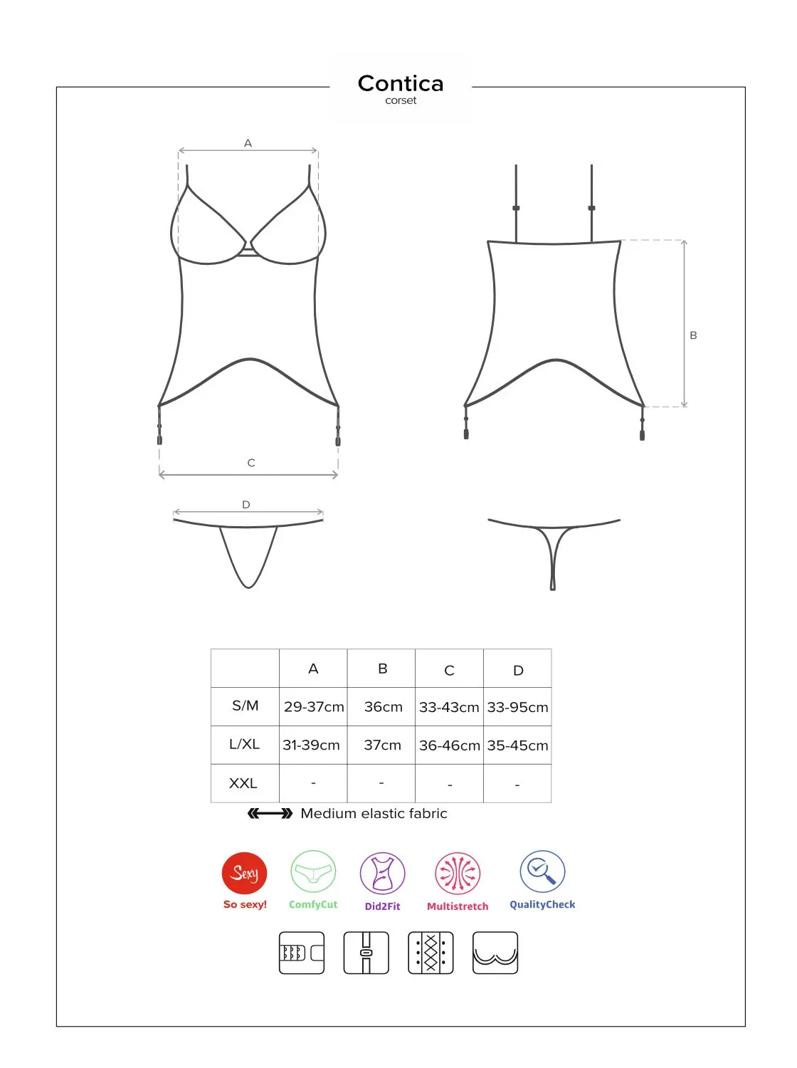 Představujeme sexy korzet Contica. Zdůrazněné tvary vám dodají sebevědomí a naladí na zlobivé potěšení! Jemný materiál ze síťoviny upoutá pozornost a krásně obepne vaše tělo. Nikdo nemůže odolat takovému drahokamu, a co vy?