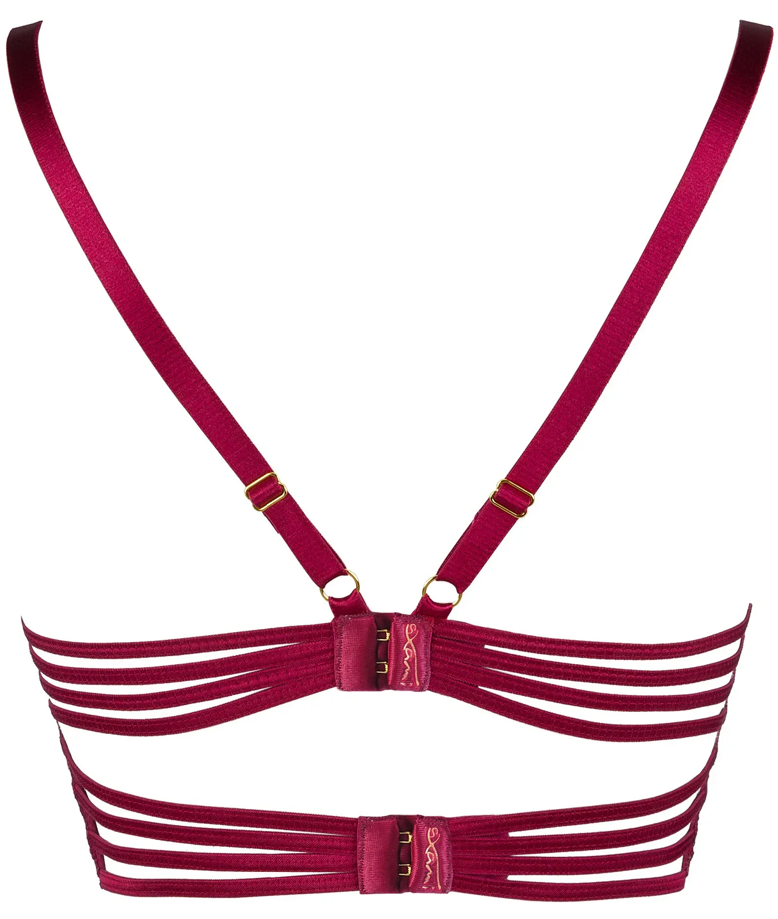 Tato koketní a efektně střižená měkká polokorzetová podprsenka je "must have" ve vašem šatníku. Překvapivé kombinace a střih naší vínové krajky jsou novinkou na trhu. Díky speciálně střiženým špičkám budou vaše tělo zdobit nejmódnější vzory letošního léta. Má dvojité zapínání na dva háčky a neodnímatelná, ale nastavitelná ramínka zakončená zlacenými ornamenty.