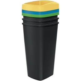 Je vybaven 3 barevnými víky, která usnadní vhazování a třídění odpadků, a funkční rám, který udrží sáček pevně na místě.