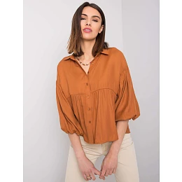 RUE PARIS Hnědá košile s ozdobnými rukávy.