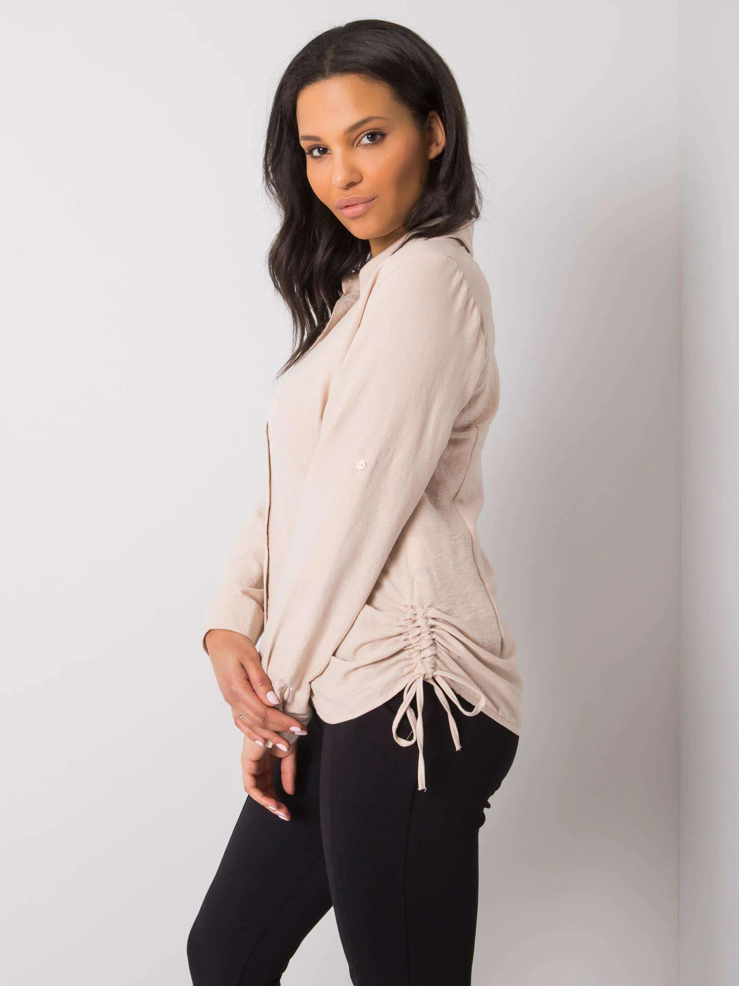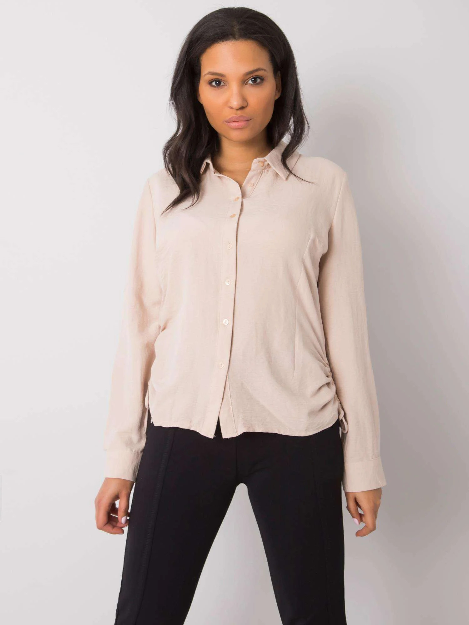 RUE PARIS Béžová žebrovaná košile.