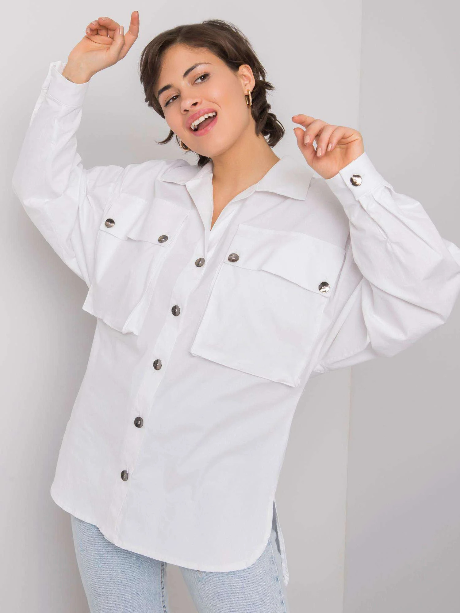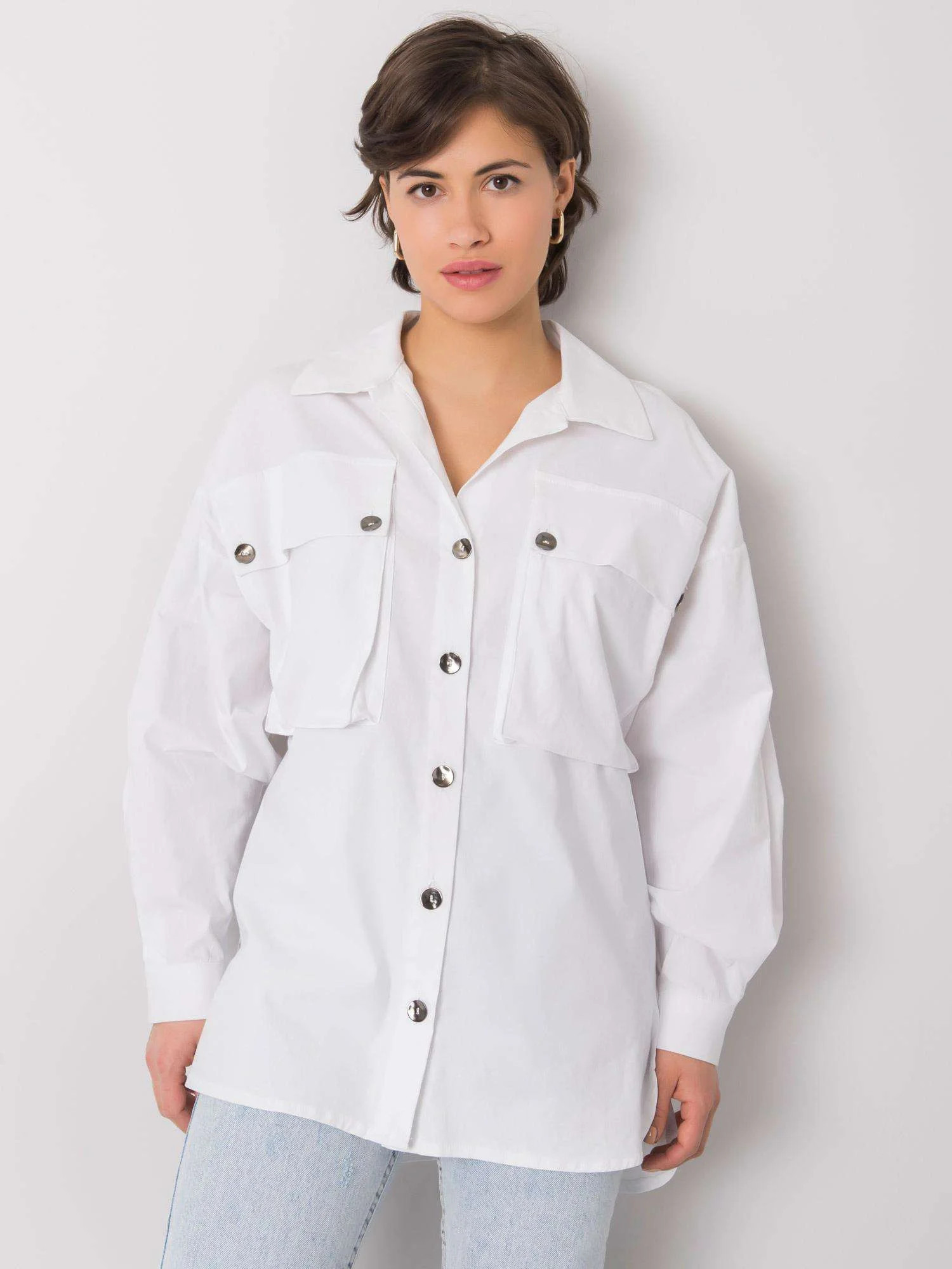 RUE PARIS Dámská bílá košile s kapsami.