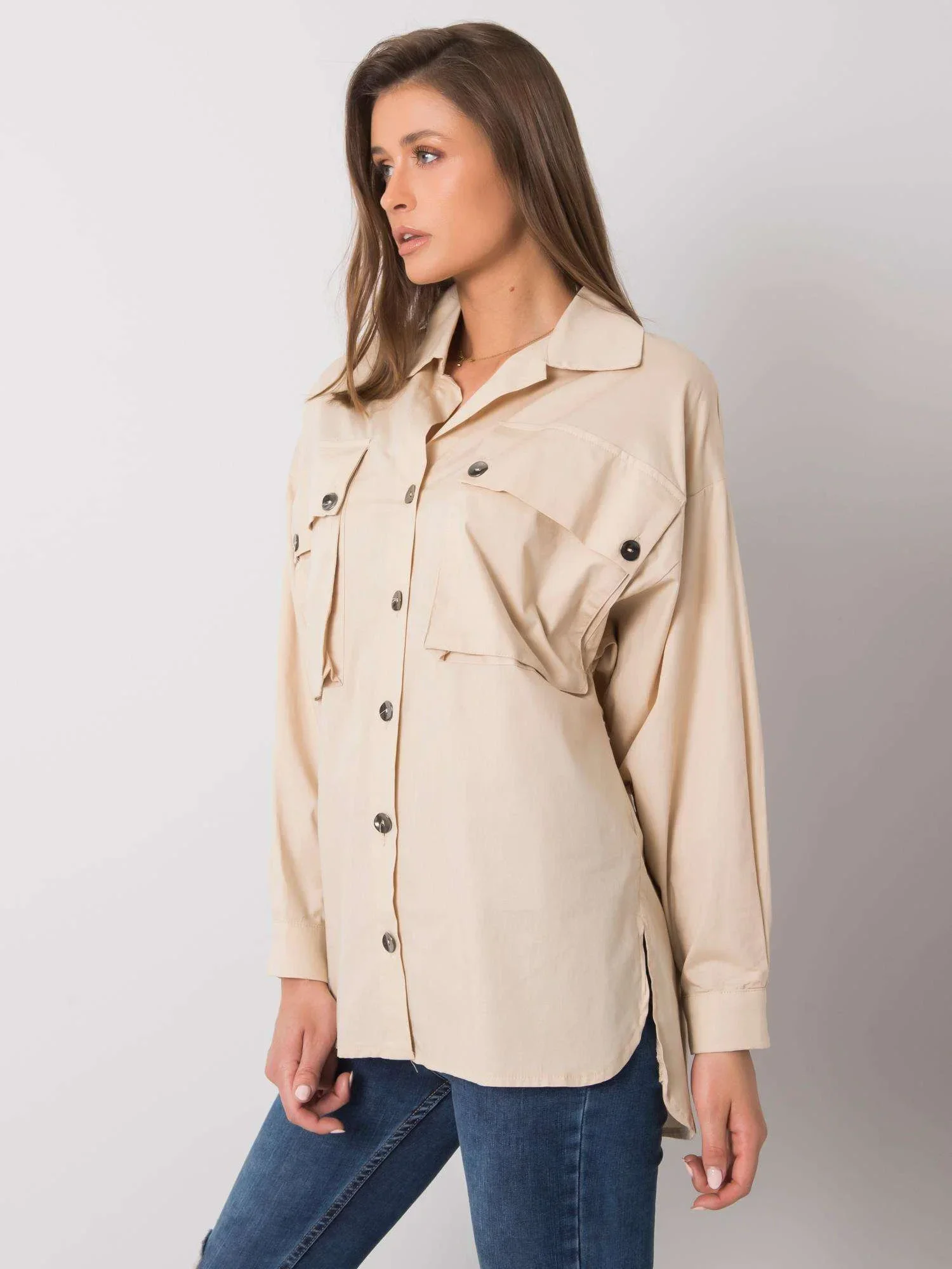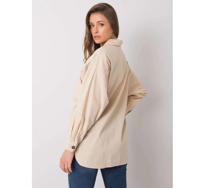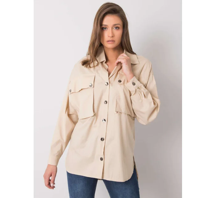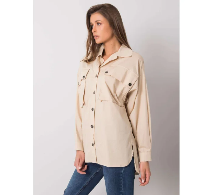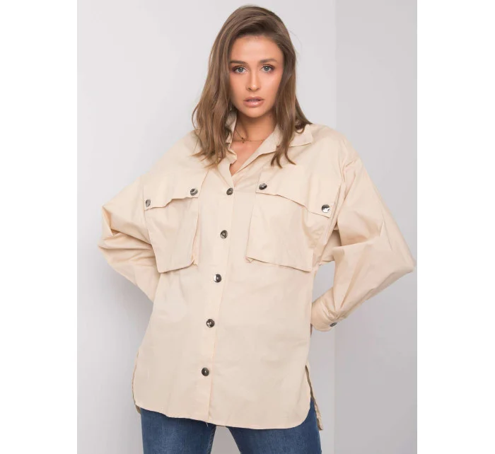 RUE PARIS Béžová dámská košile s kapsami.