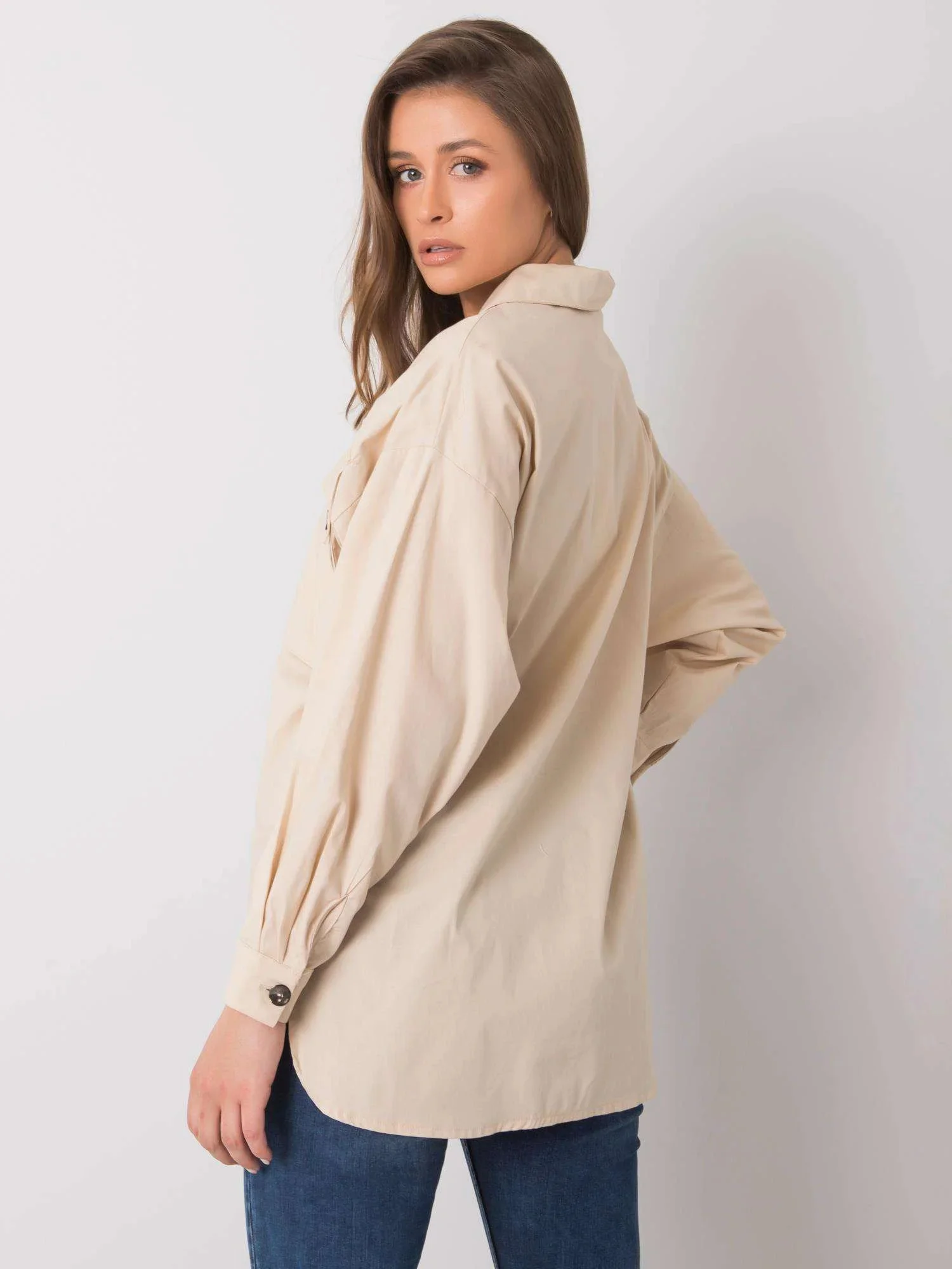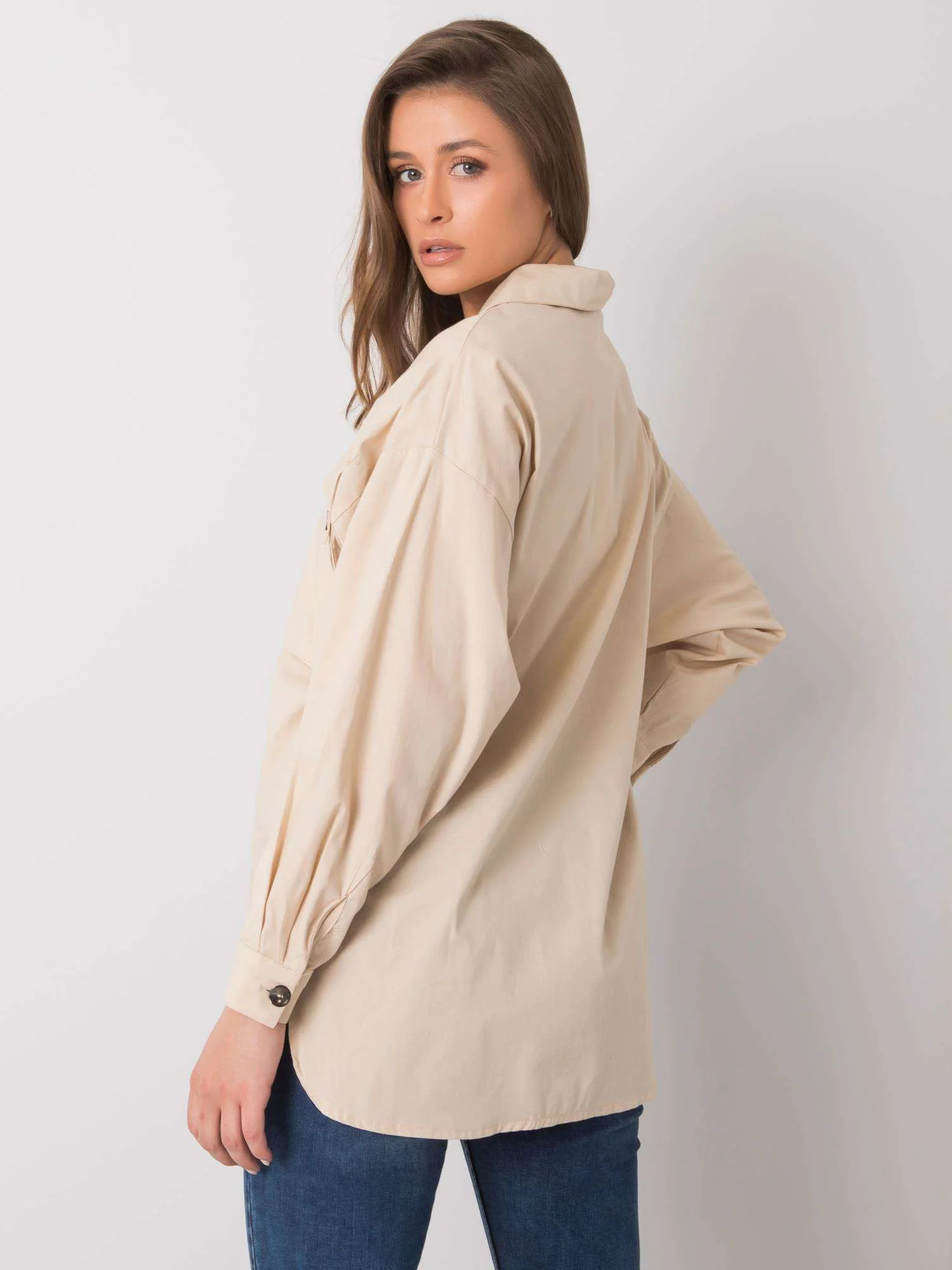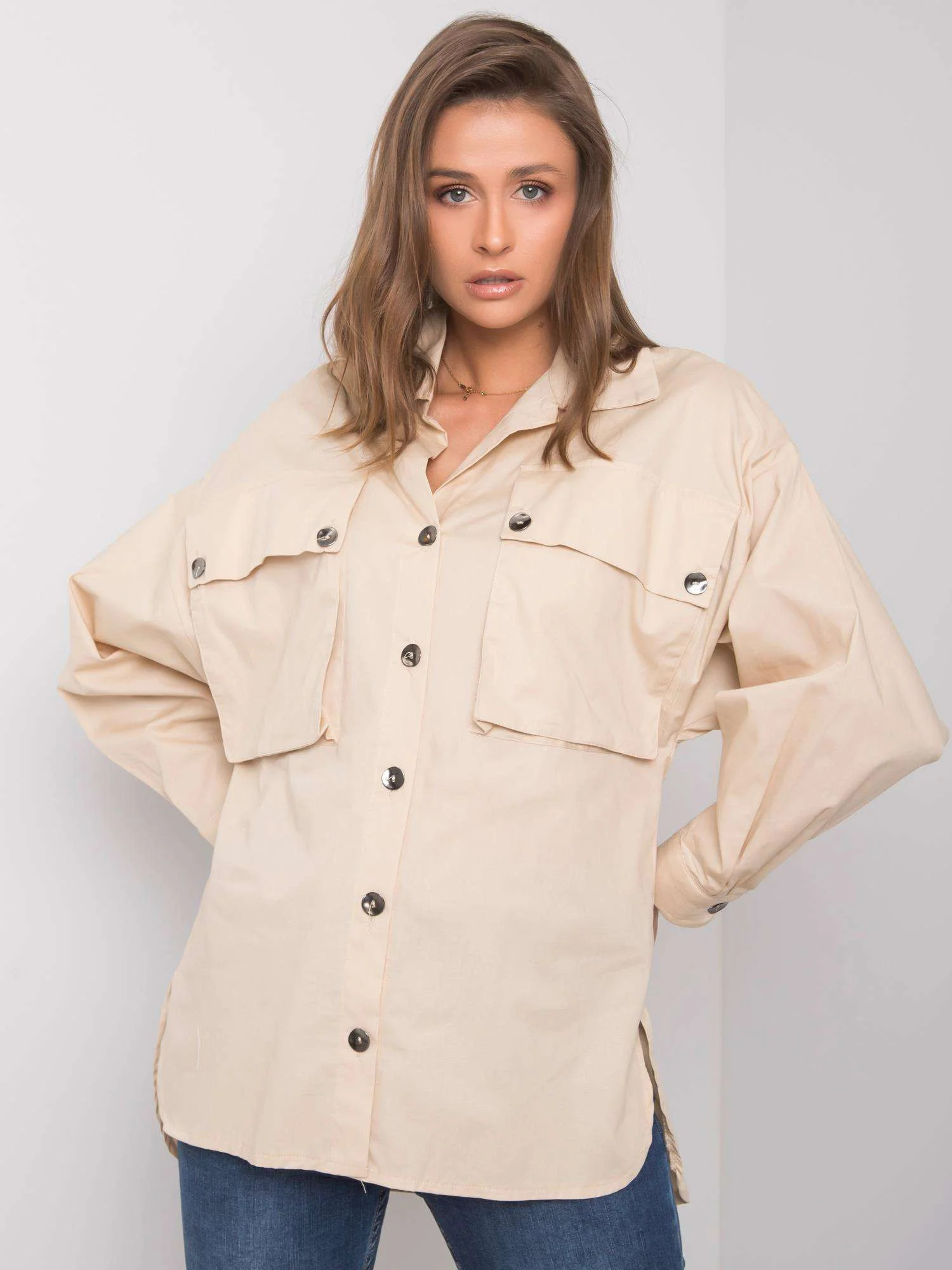 RUE PARIS Béžová dámská košile s kapsami.