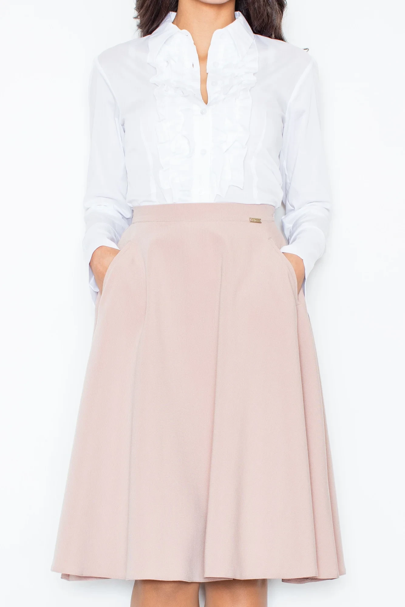 Efektowny duet klasycznego fasonu z ciekawą stylistyką. Żaneta to koszula z długim rękawem, którą w przedniej części zdobi kaskada falban układających się na kształt żabotu. Elegancka, o ładnie wyprofilowanym kołnierzu, który podkreśla wizytowy charakter bluzeczki. Wyszukana i pełna gracji, stworzy wymowny komplet ze spódnicą bądź spodniami.