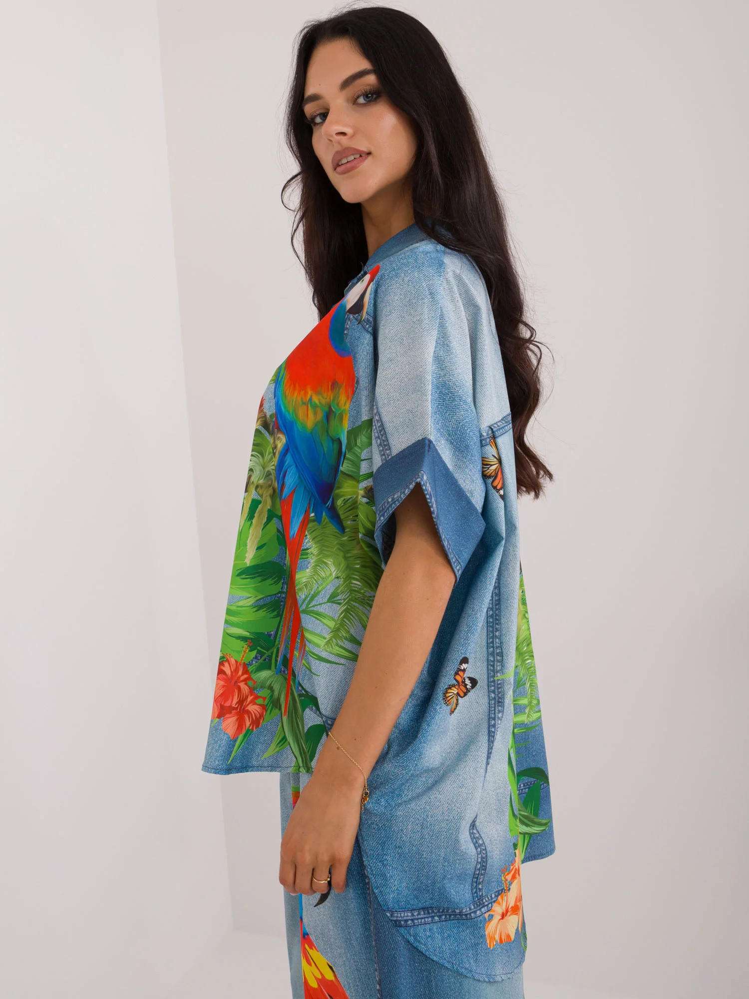 Rozměry košile ve velikosti one size měřené na plocho: šířka v podpaží - 82 cm, celková délka (vpředu) - 65 cm, celková délka (vzadu) - 77 cm .