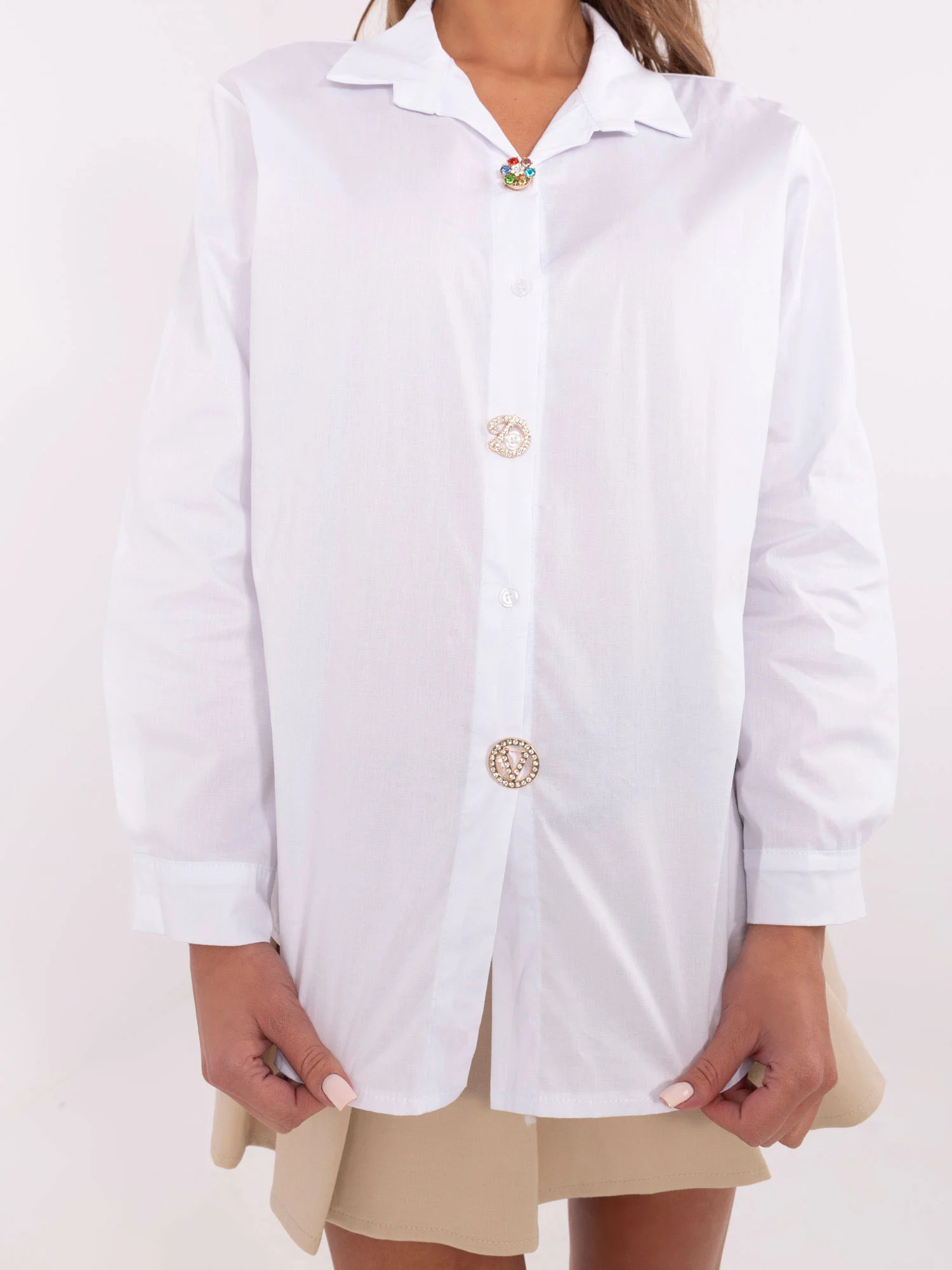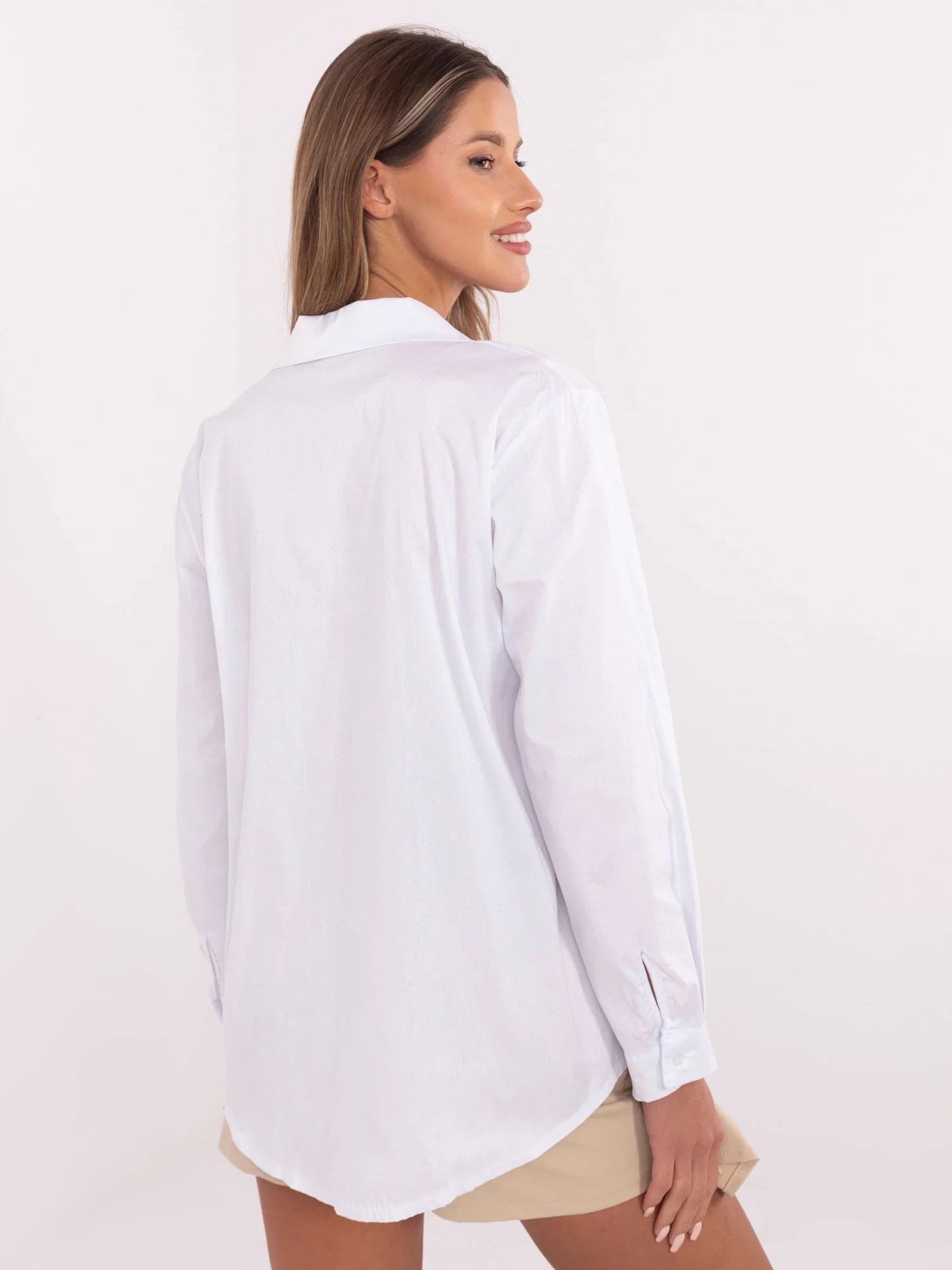 Wymiary koszuli w rozmiarze one size mierzone na płasko: szerokość pod pachami - 57 cm, szerokość w biodrach - 62 cm, długość rękawa - 58 cm (od szwu), długość całkowita - 70 cm .