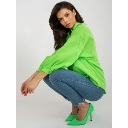 Světle zelená košile nadměrné velikosti s buffovými rukávy .