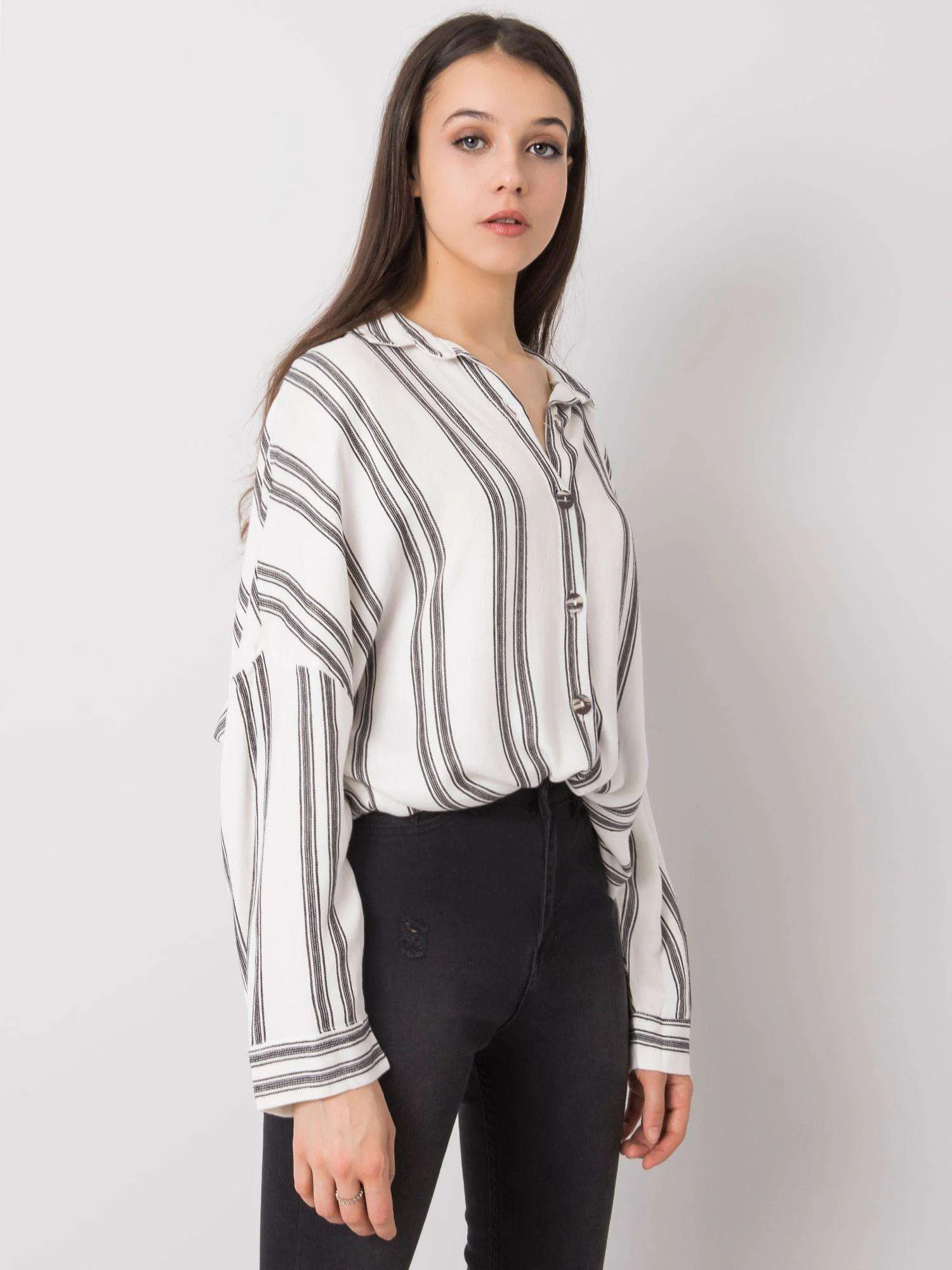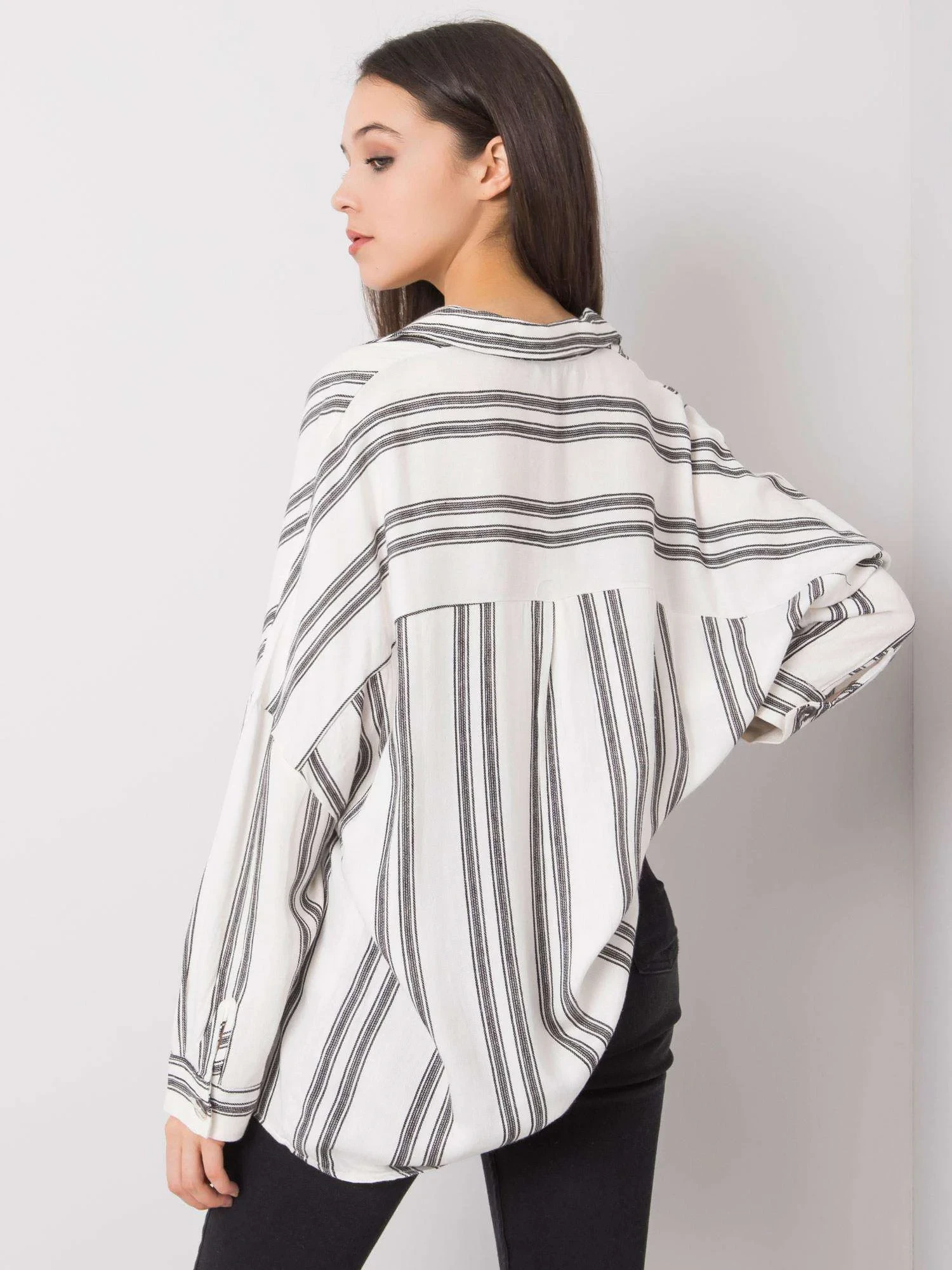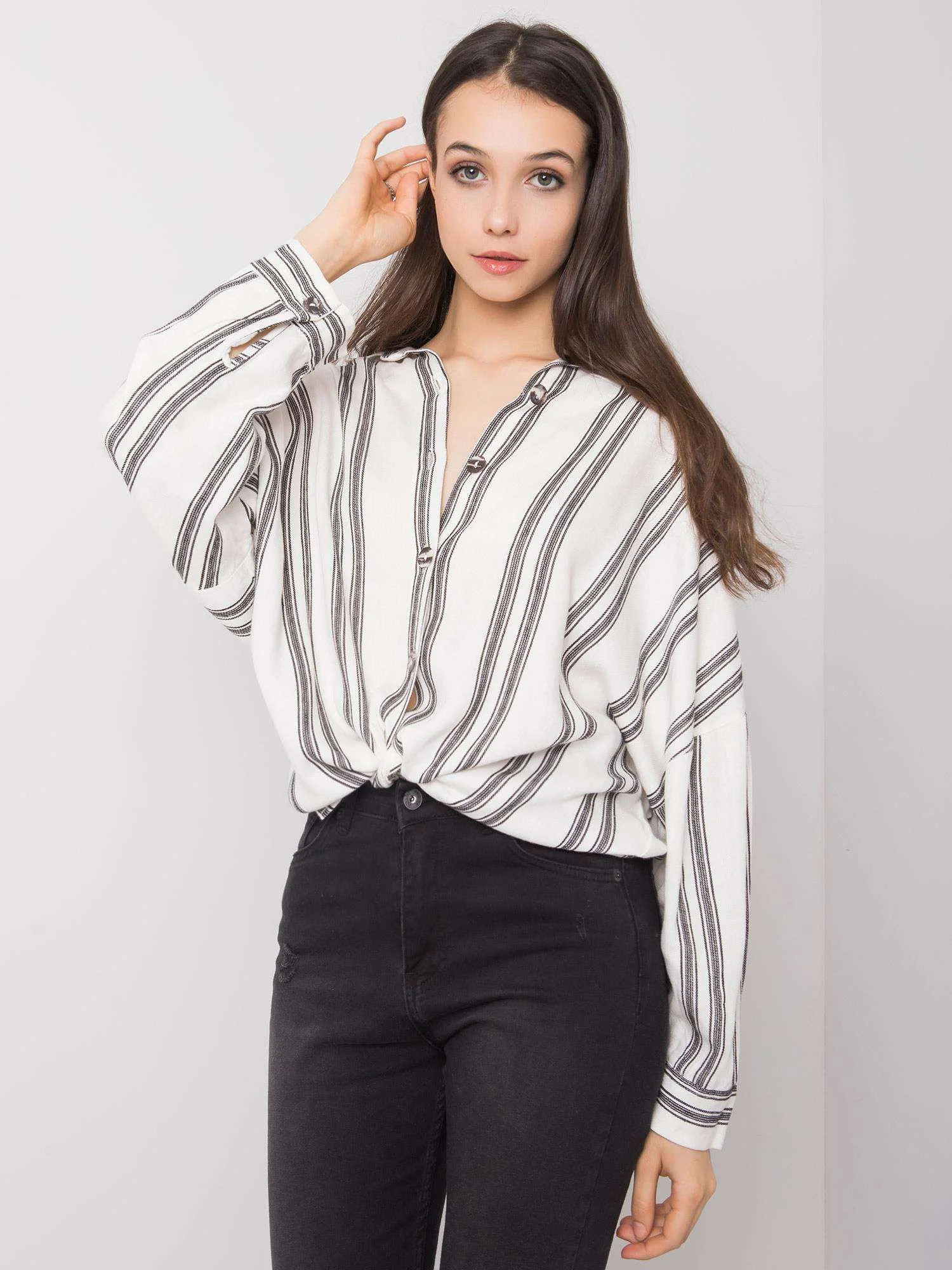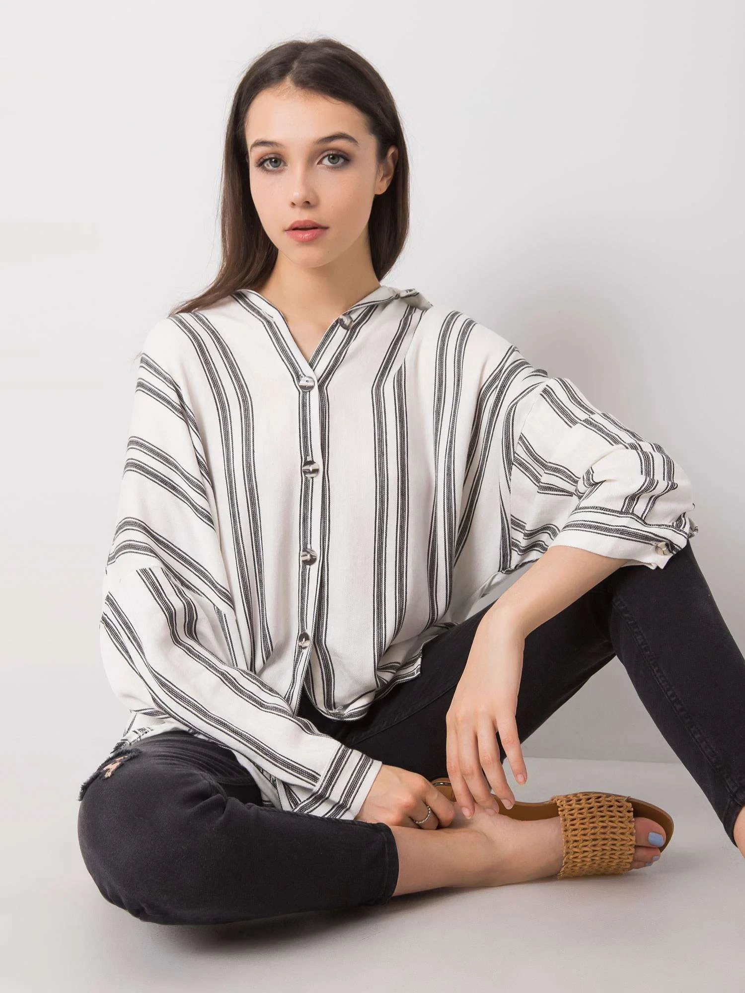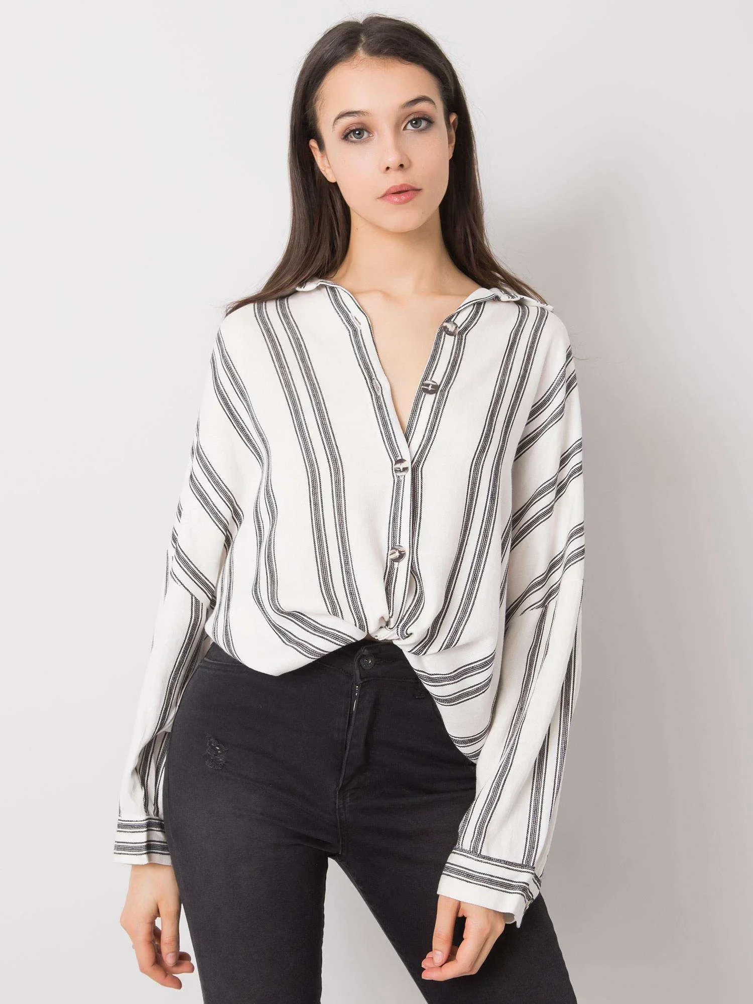 RUE PARIS Dámská pruhovaná košile v barvě ecru.