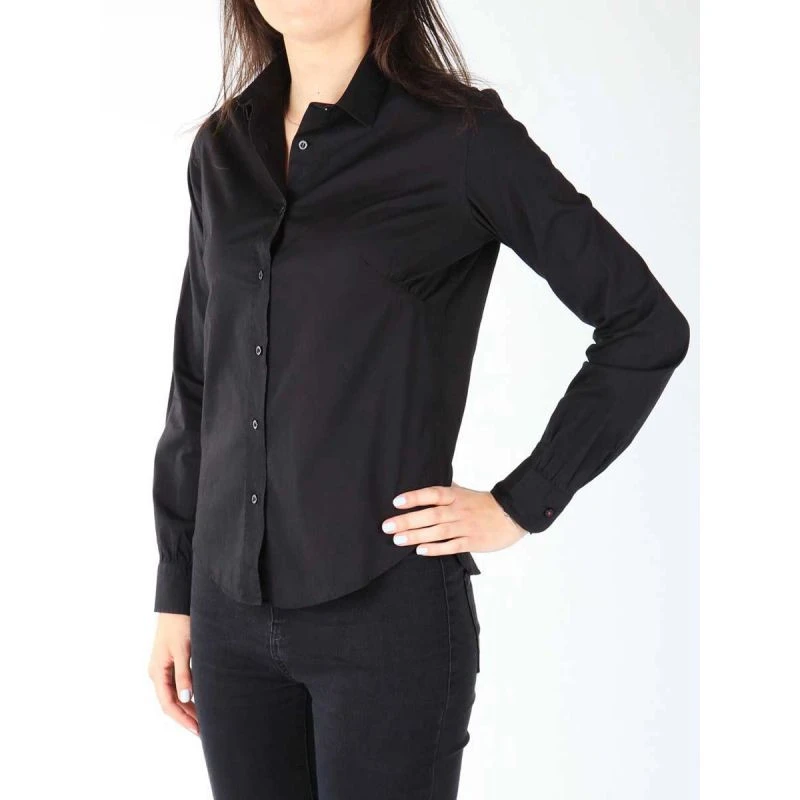 Dámská košile s límečkem v univerzální černé barvě se zapínáním na knoflíky, která se hodí k různým outfitům.