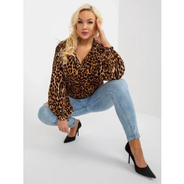 Světle hnědá a černá plus size košilová halenka s leopardím potiskem .