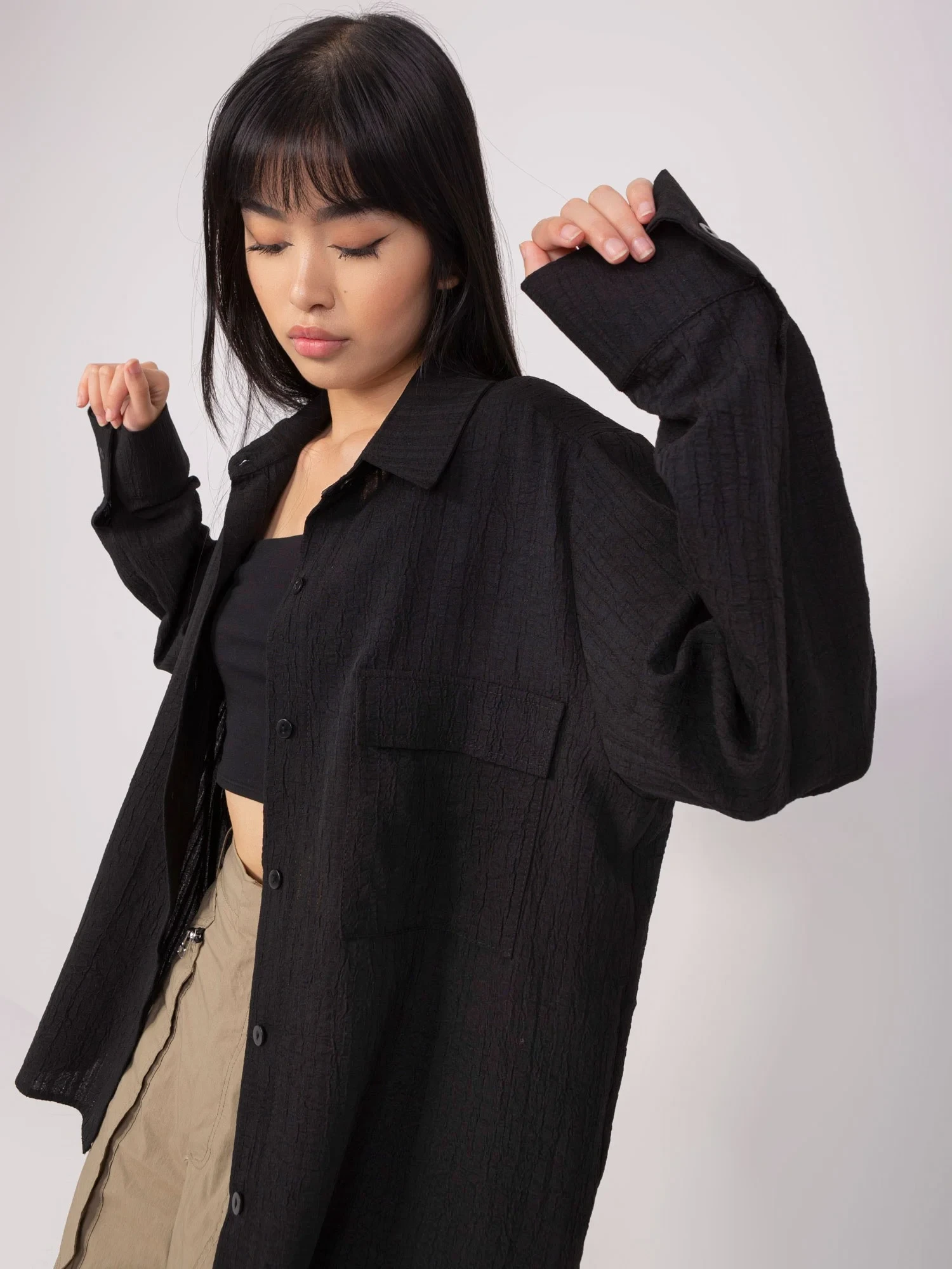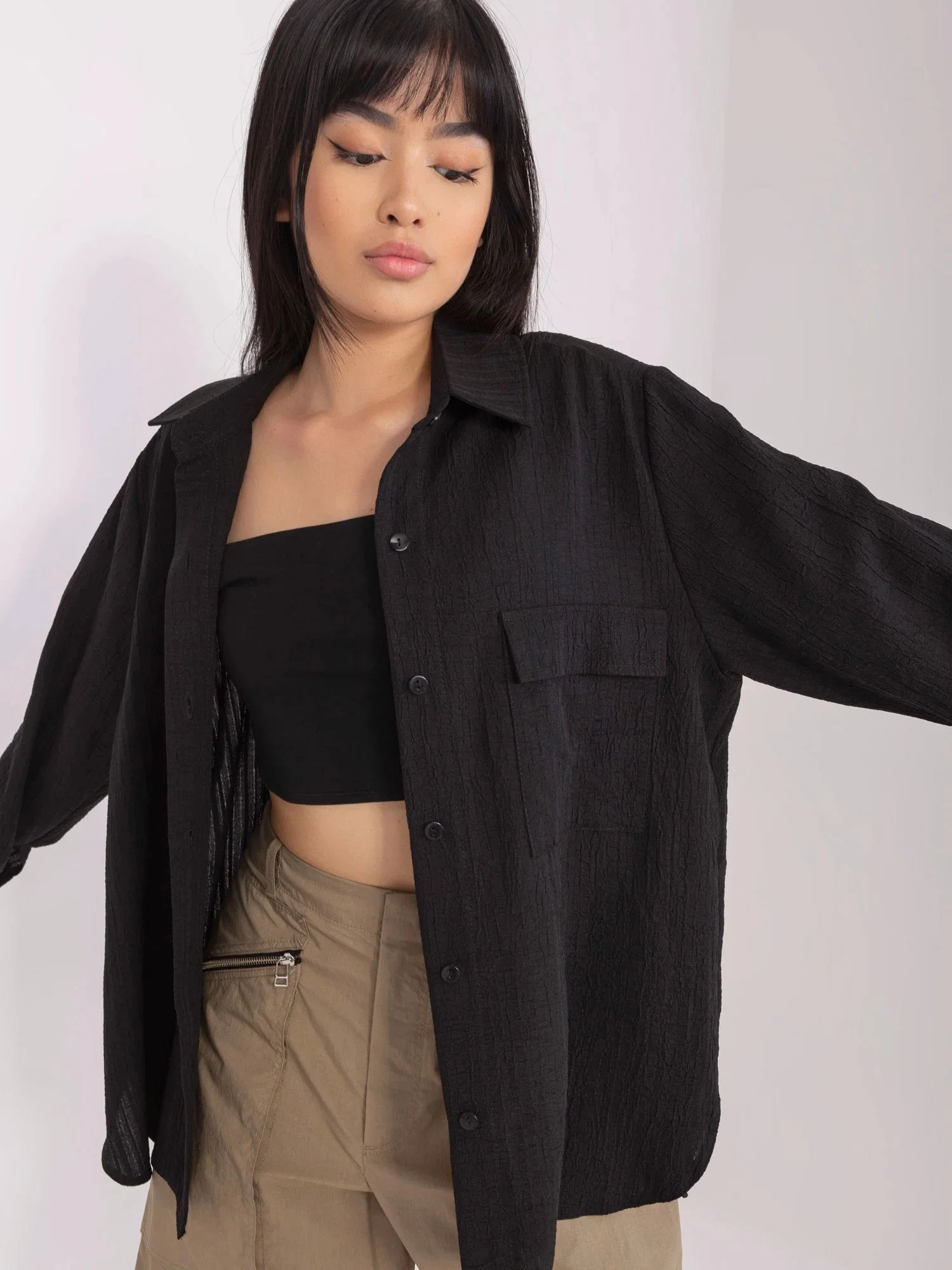 Rozměry košile ve velikosti S/M měřené na plocho: šířka v podpaží - 59 cm, délka rukávu - 63 cm, celková délka (vpředu) - 67 cm, celková délka (vzadu) - 72 cm .