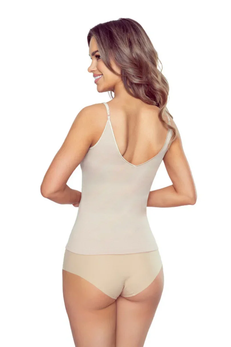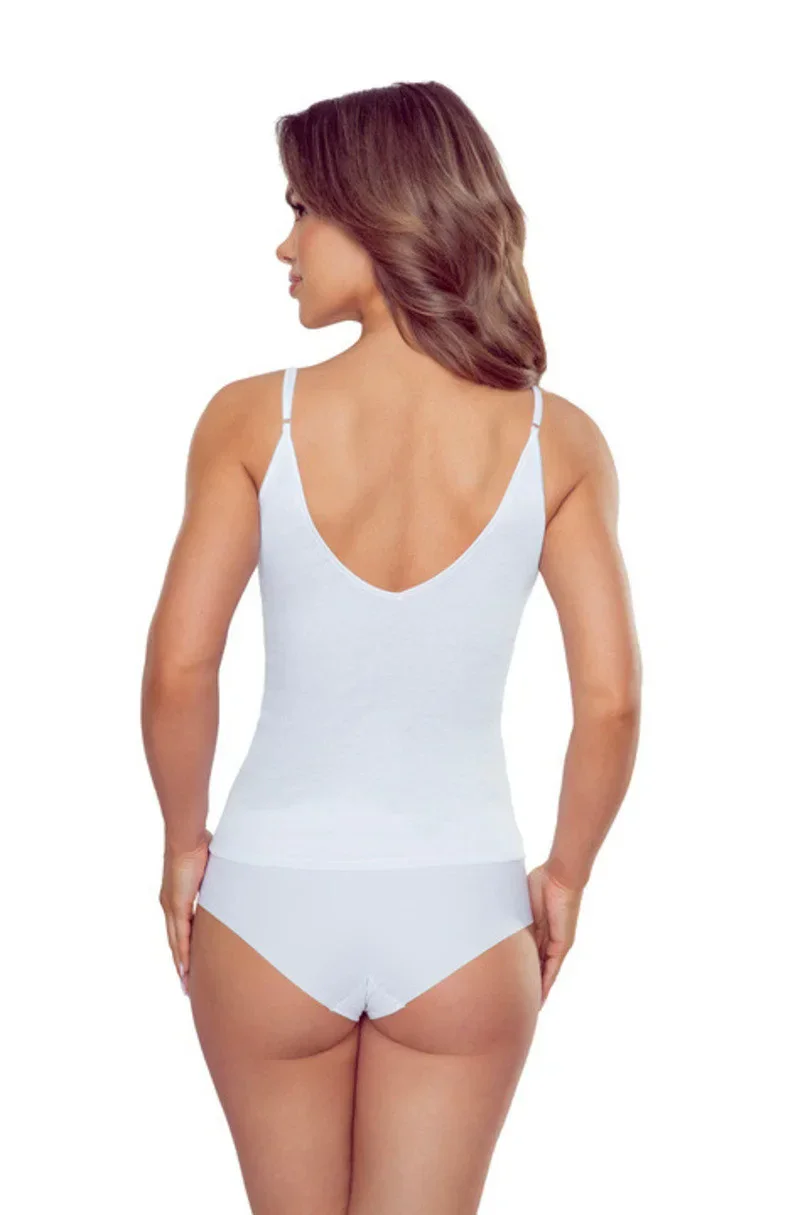 Koszulka damska LUNA to kwintesencja kobiecej prostoty i subtelnej elegancji. Wykonana z wysokiej jakości bawełny, gwarantuje komfort noszenia przez cały dzień. Regulowane cienkie ramiączka umożliwiają idealne dopasowanie, a dekolt w kształcie litery „V” podkreśla szyję i dodaje całości kobiecego wdzięku. Dopasowany krój koszulki pięknie układa się na sylwetce, nie krępując ruchów. Idealnie sprawdzi się zarówno jako samodzielny element letnich stylizacji, jak i jako warstwa bazowa pod marynarkę, sweter lub kardigan. LUNA to niezbędnik w każdej kobiecej garderobie – łączący wygodę, klasę i uniwersalność.
